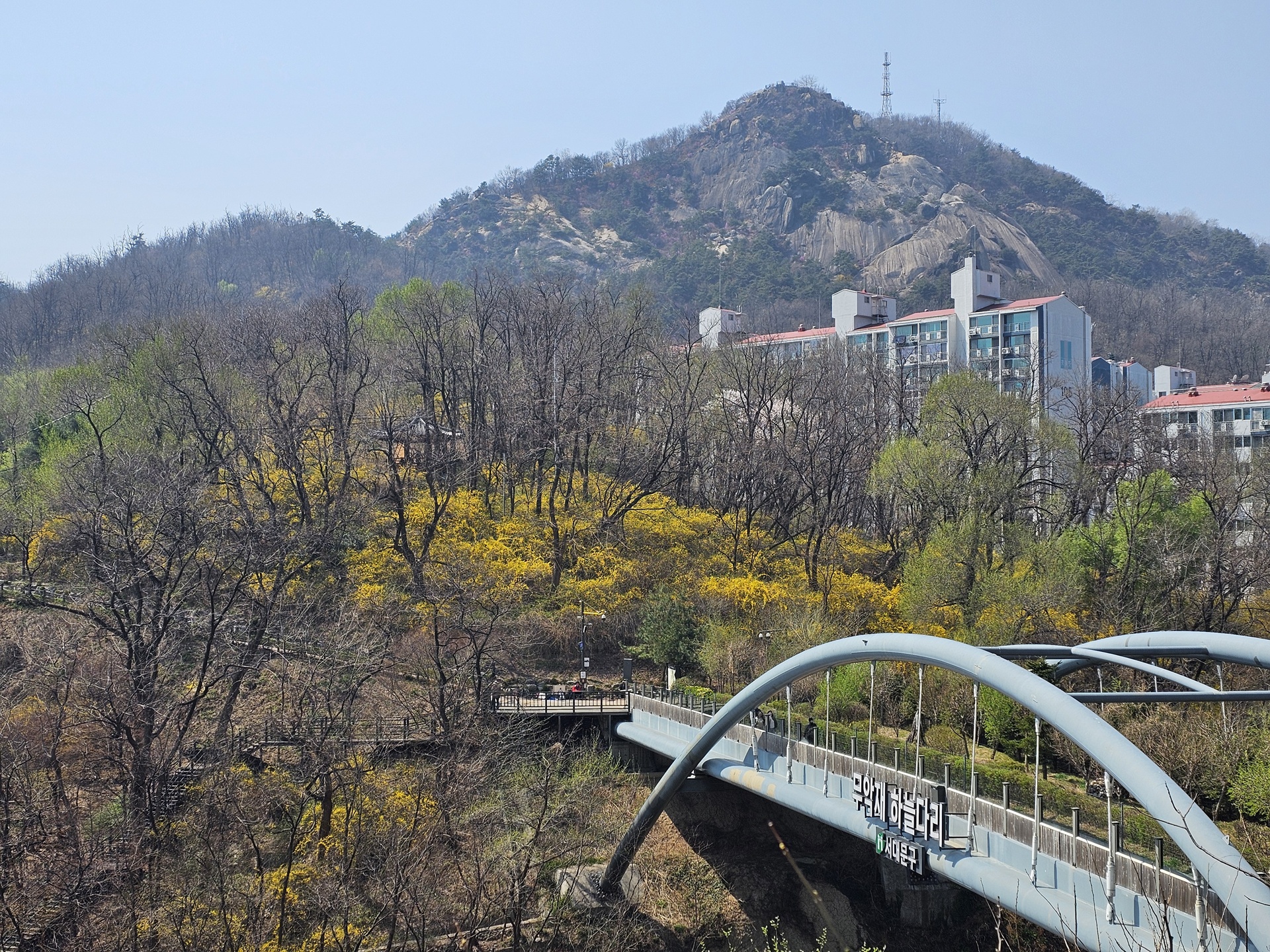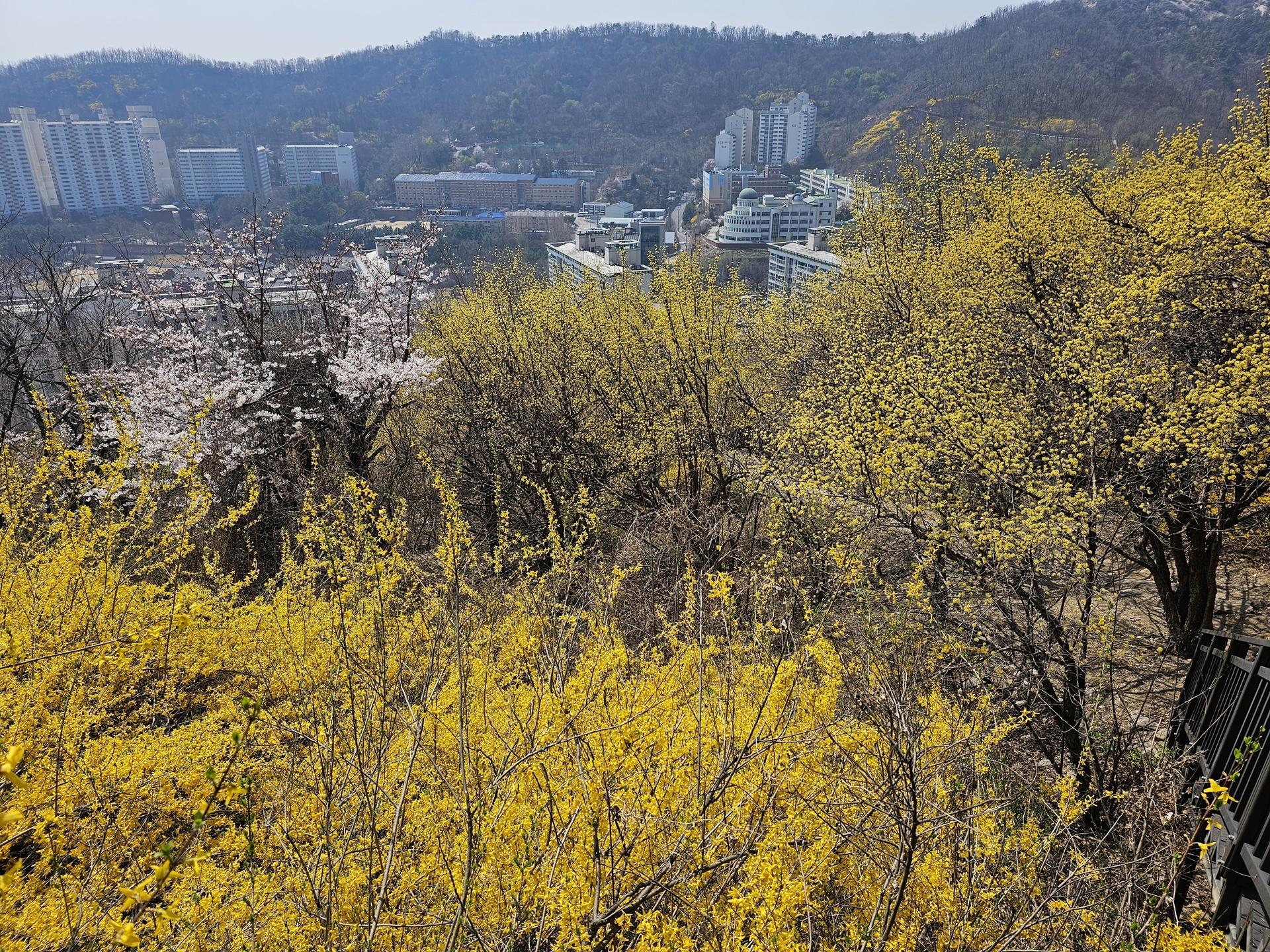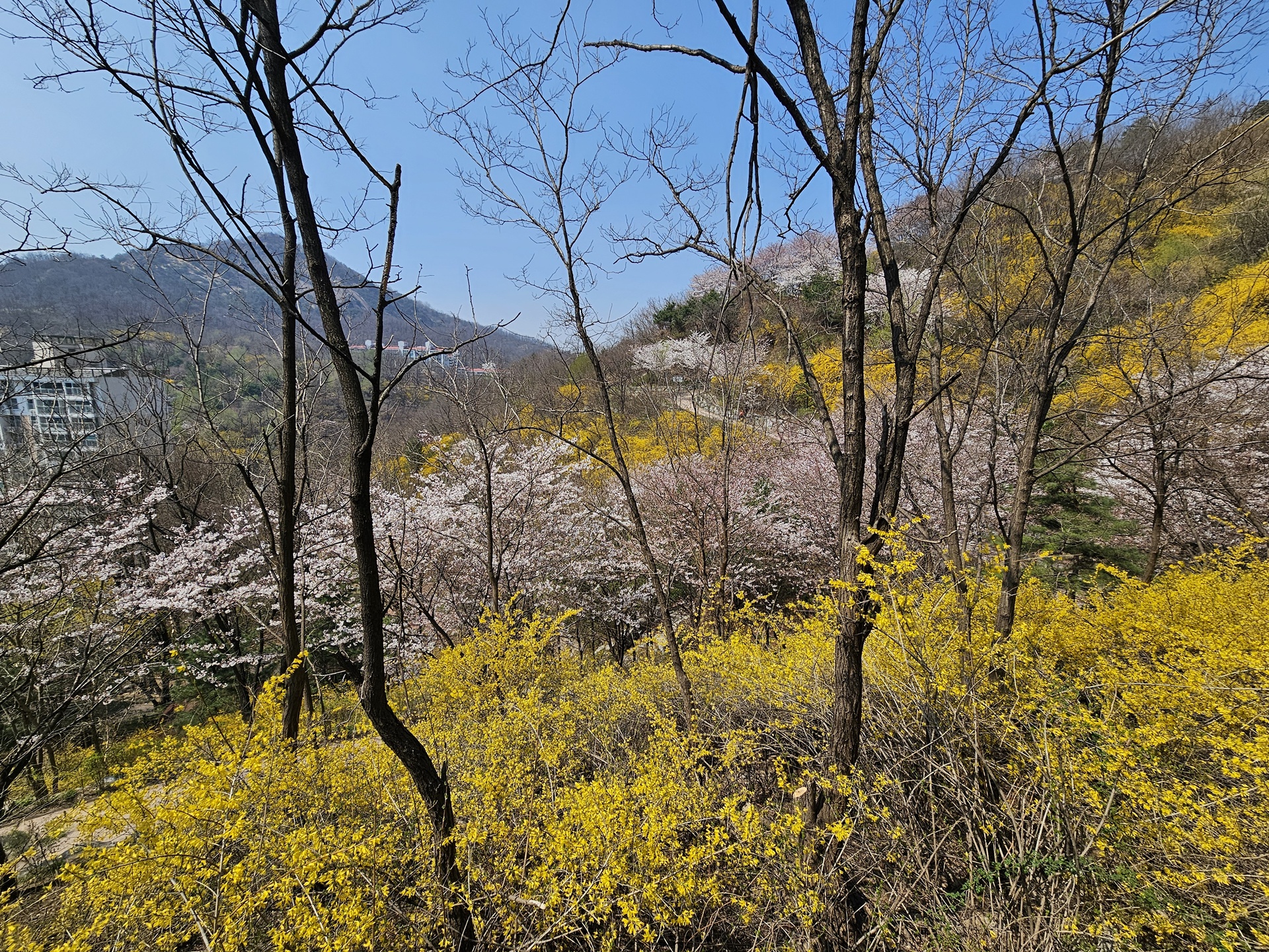 인왕산에는 개나리, 산수유, 벚꽃이 한창이다.