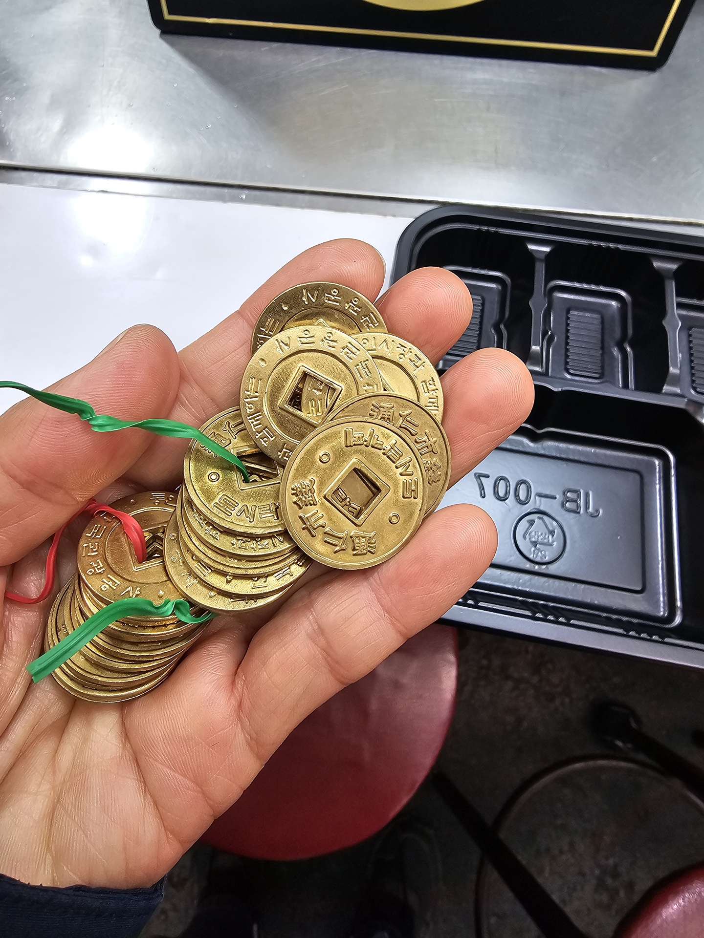 수성동계곡 쪽으로 내려와서 통인시장 엽전으로 사 먹은 점심. 엽전 1개당 500원이다. 묶음 한 개당 5천원..