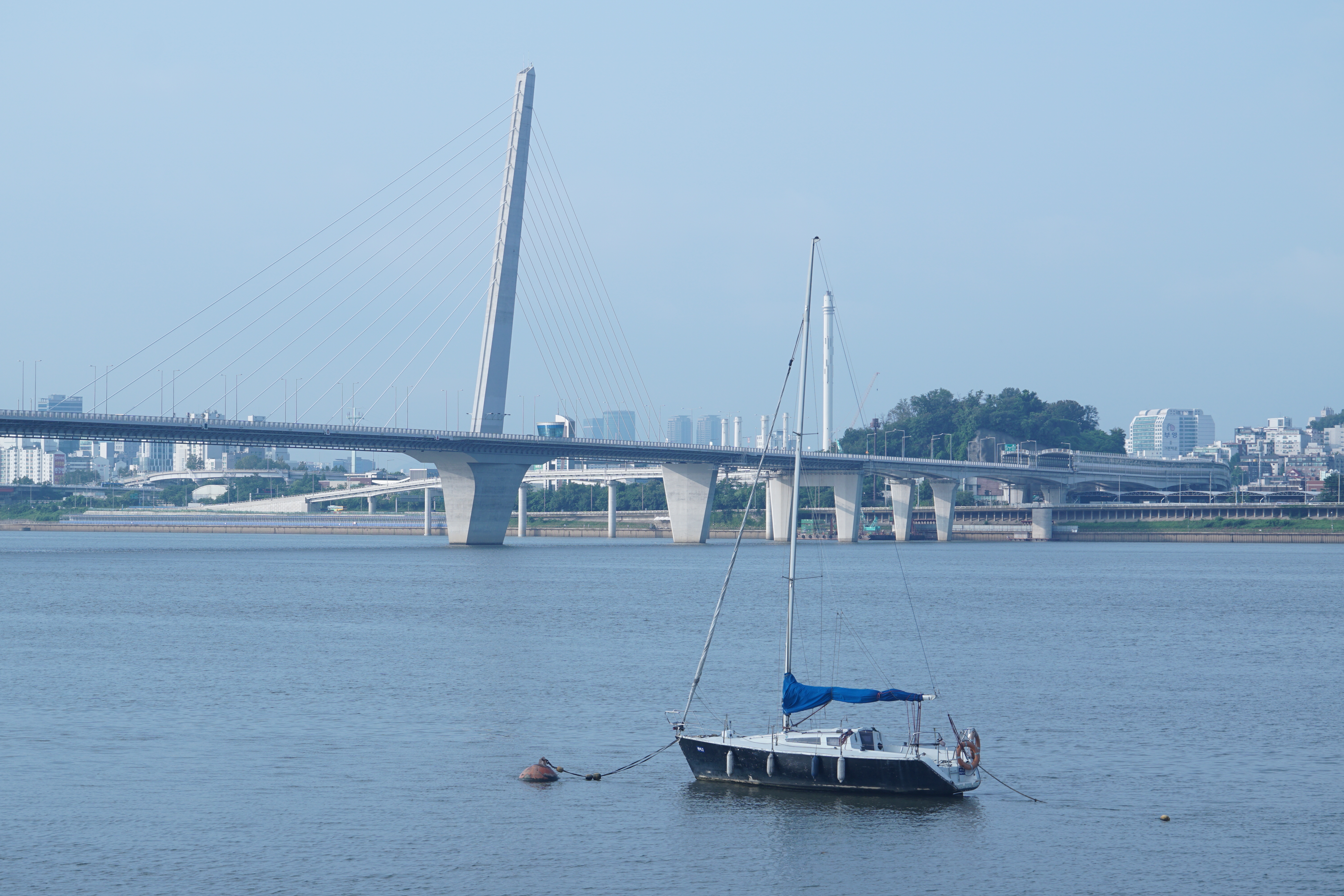 소나기 온다고 하는데 파란하늘에 해가 떠서 다행이다 생각하고 자전거타고