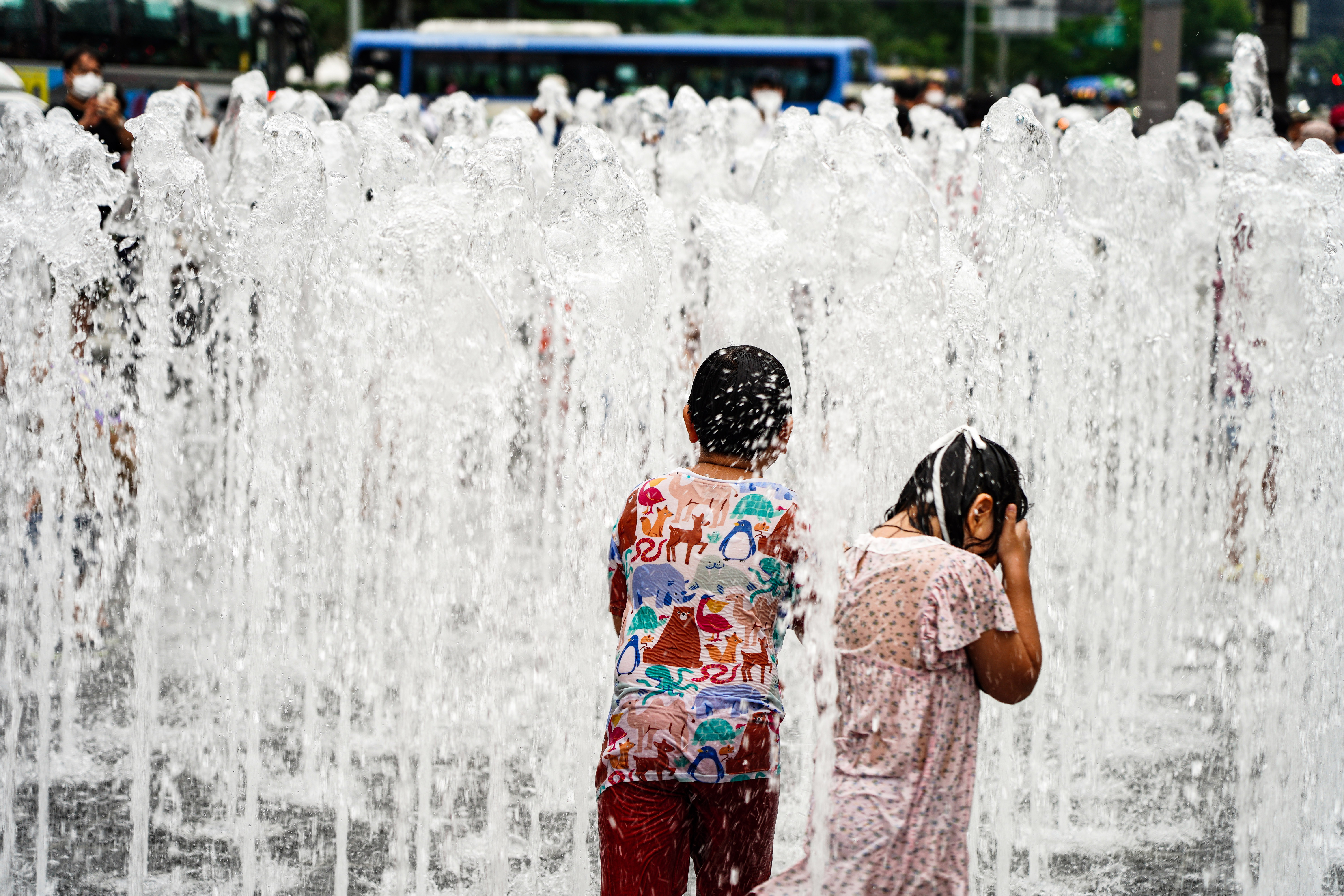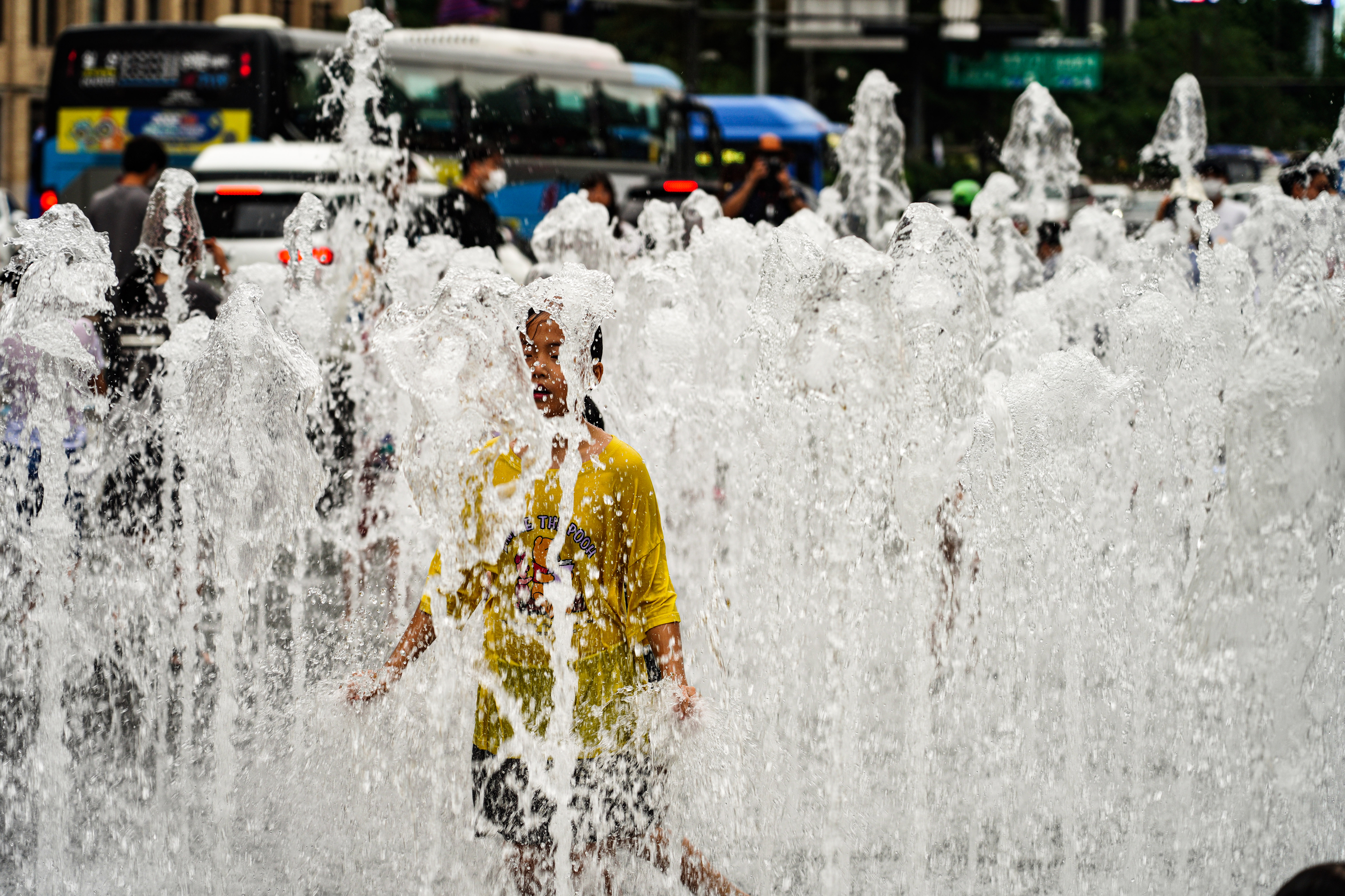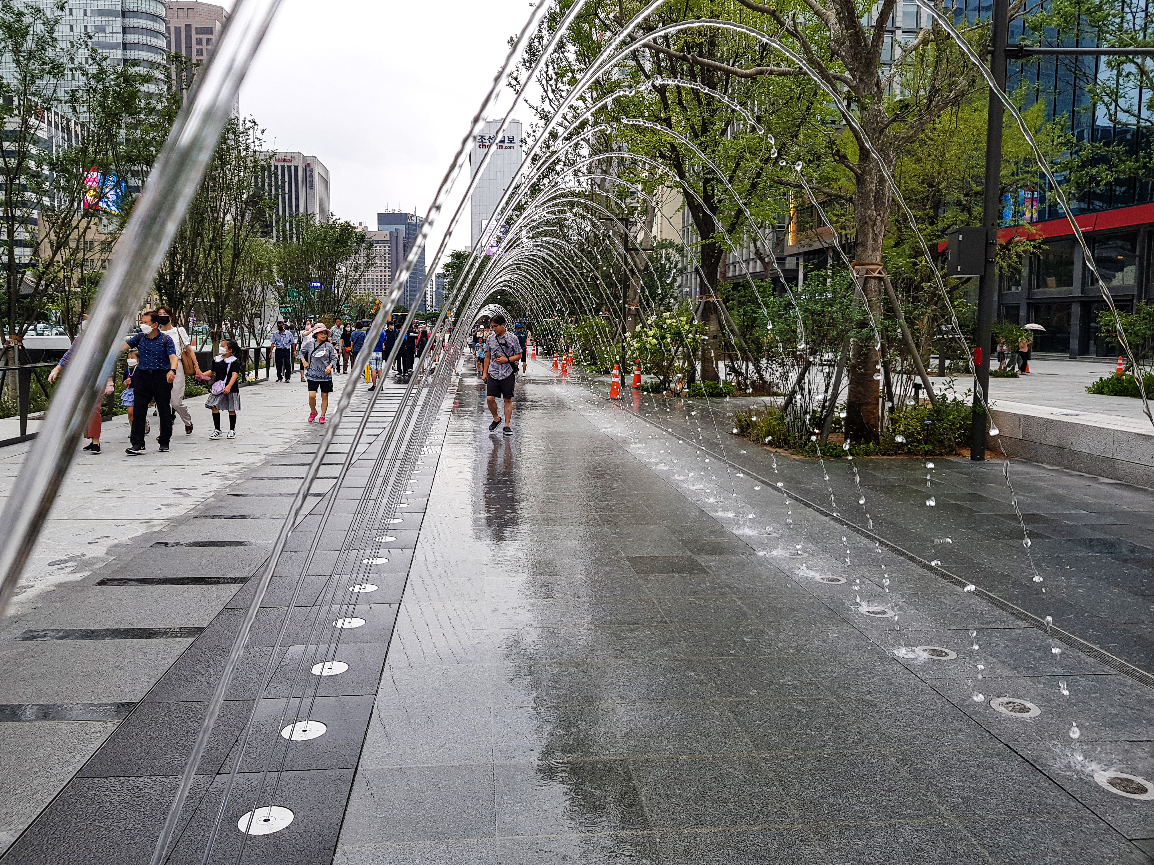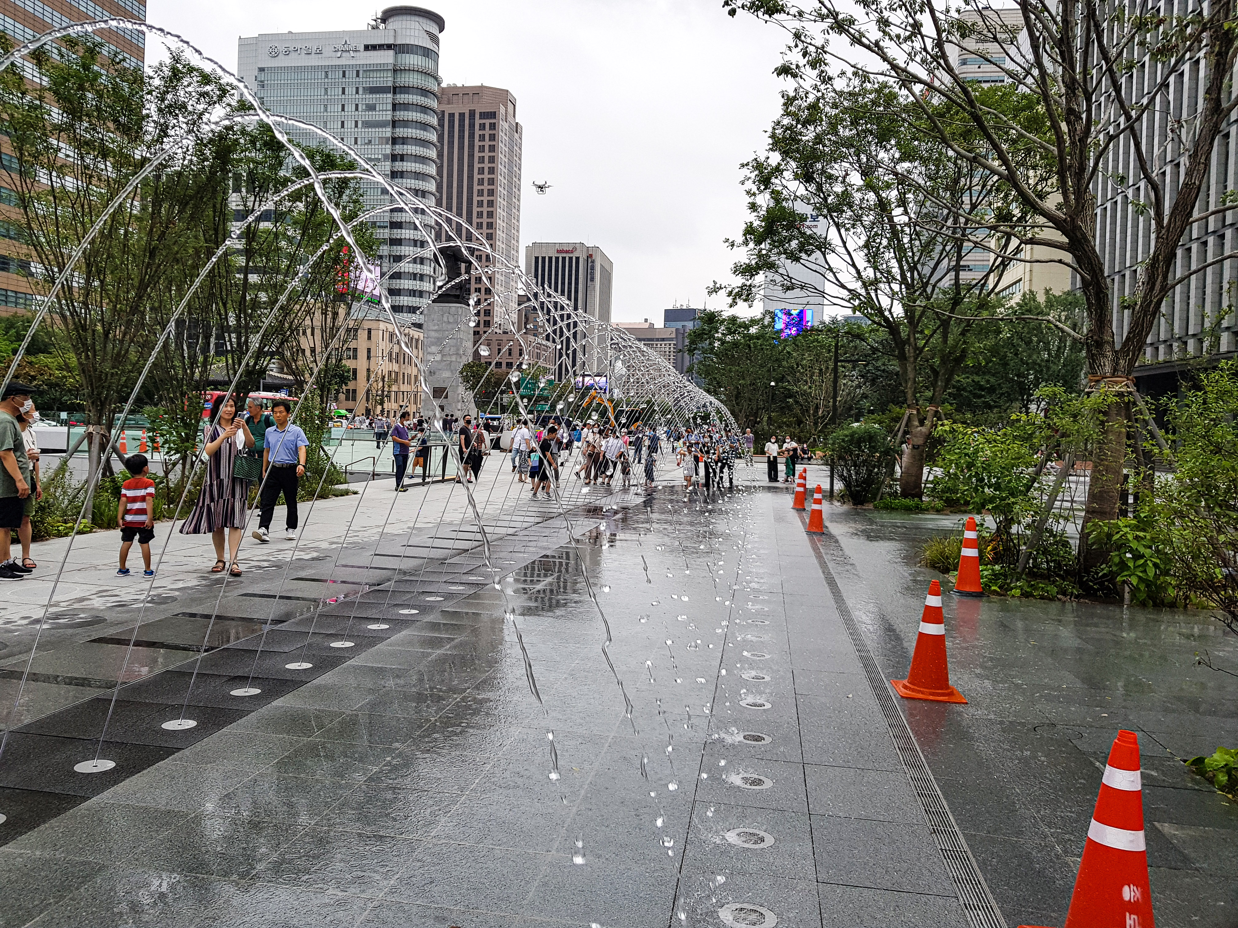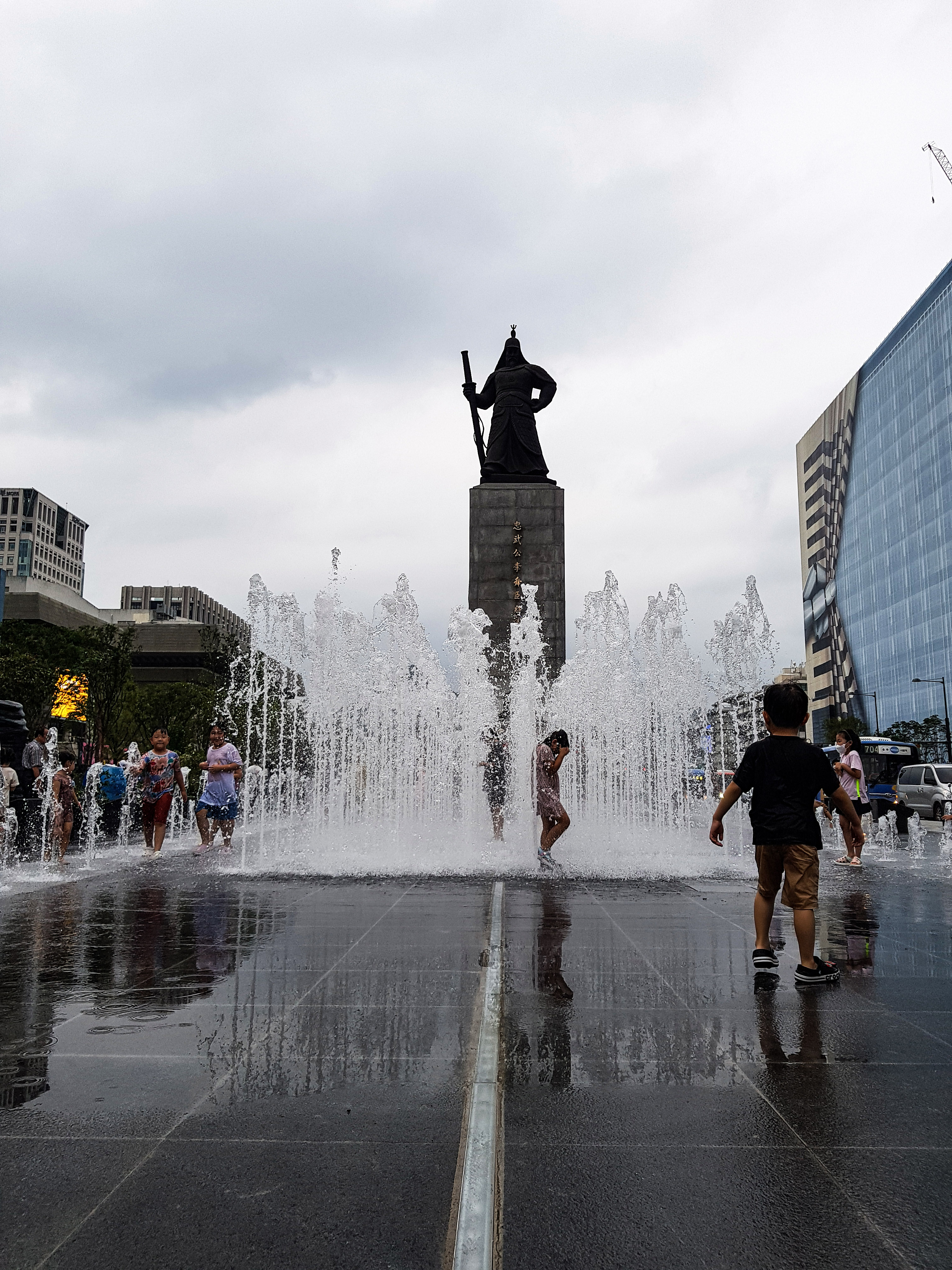 이순신 장군 동상앞에있는 바닥분수는 아이들의 놀이터.