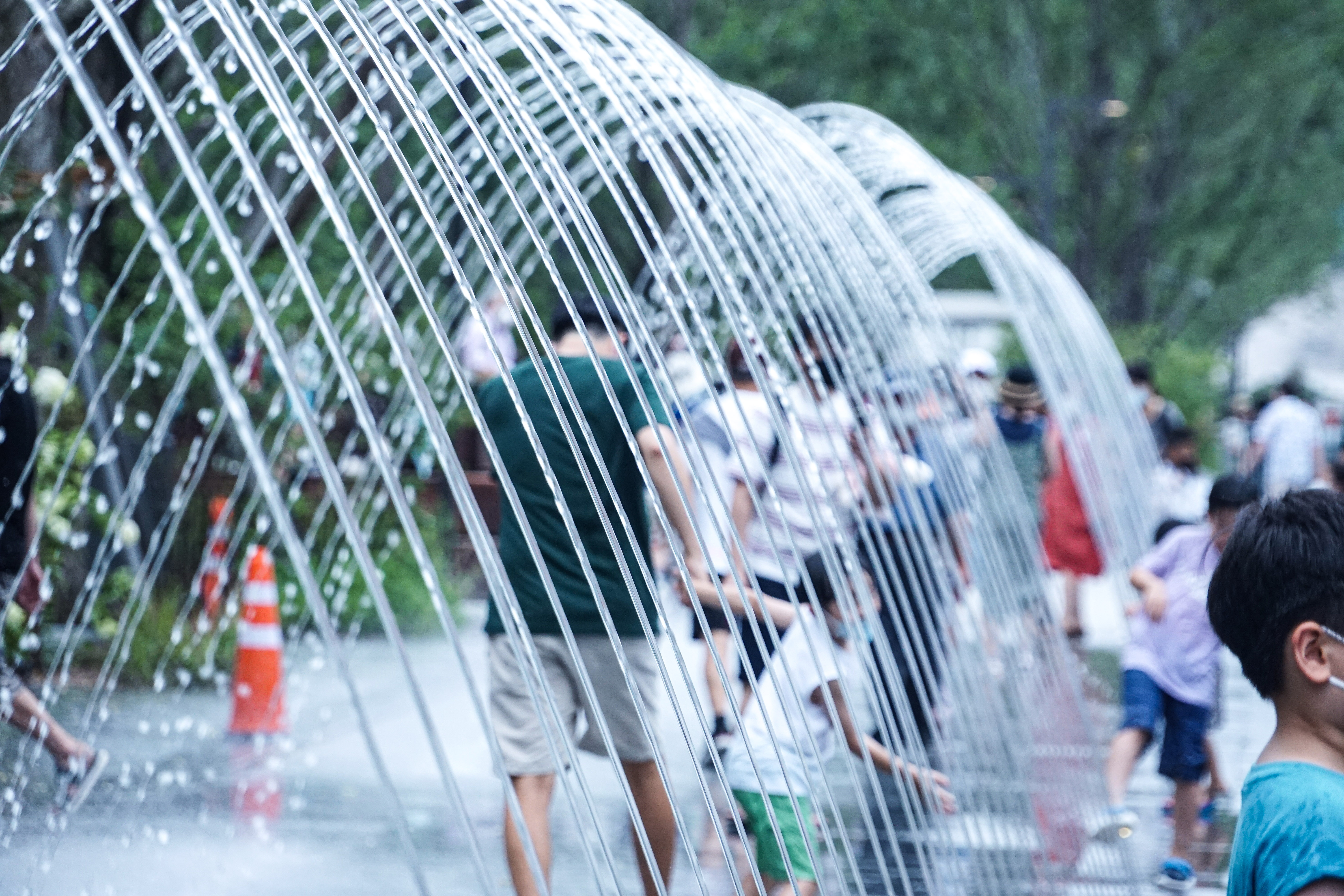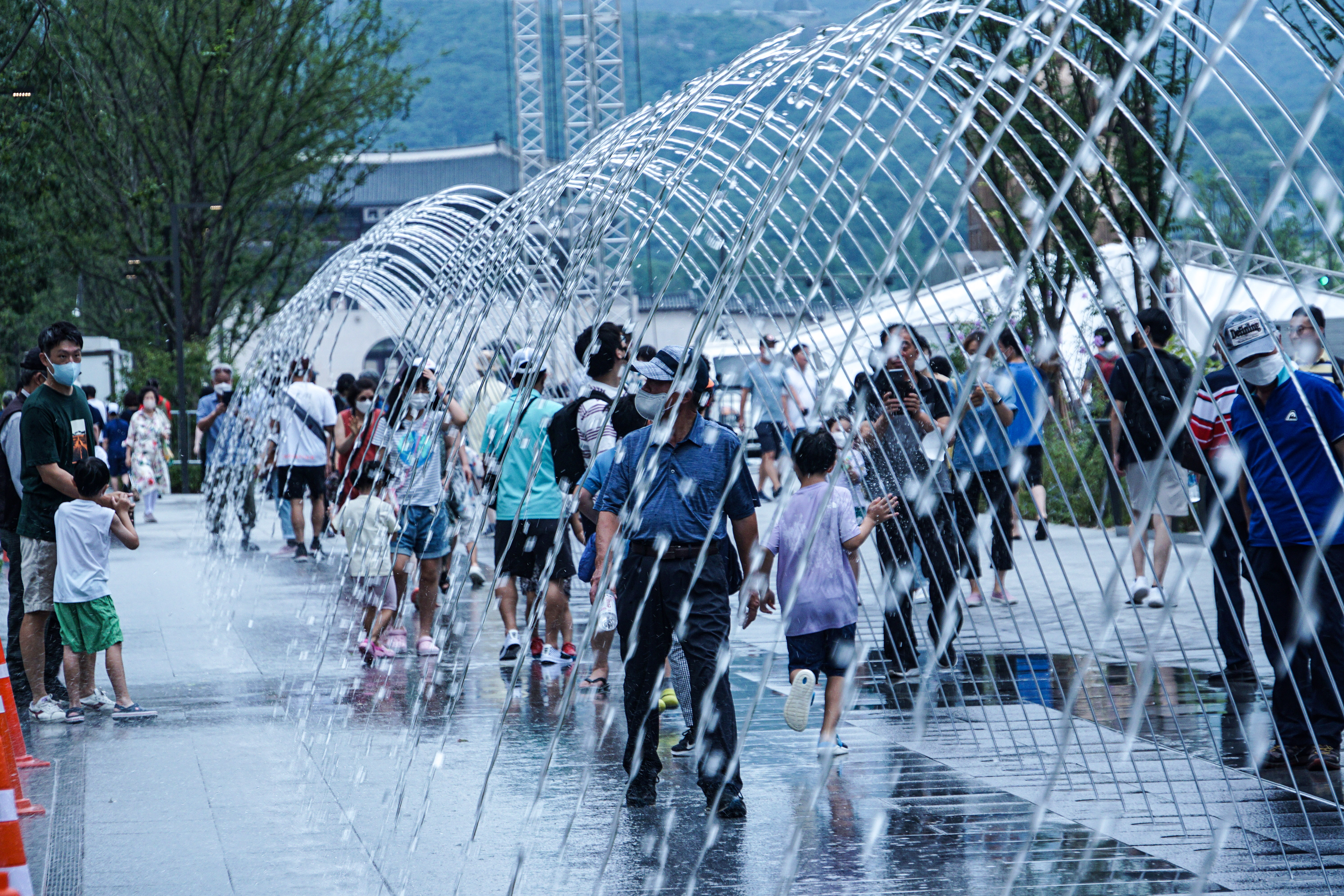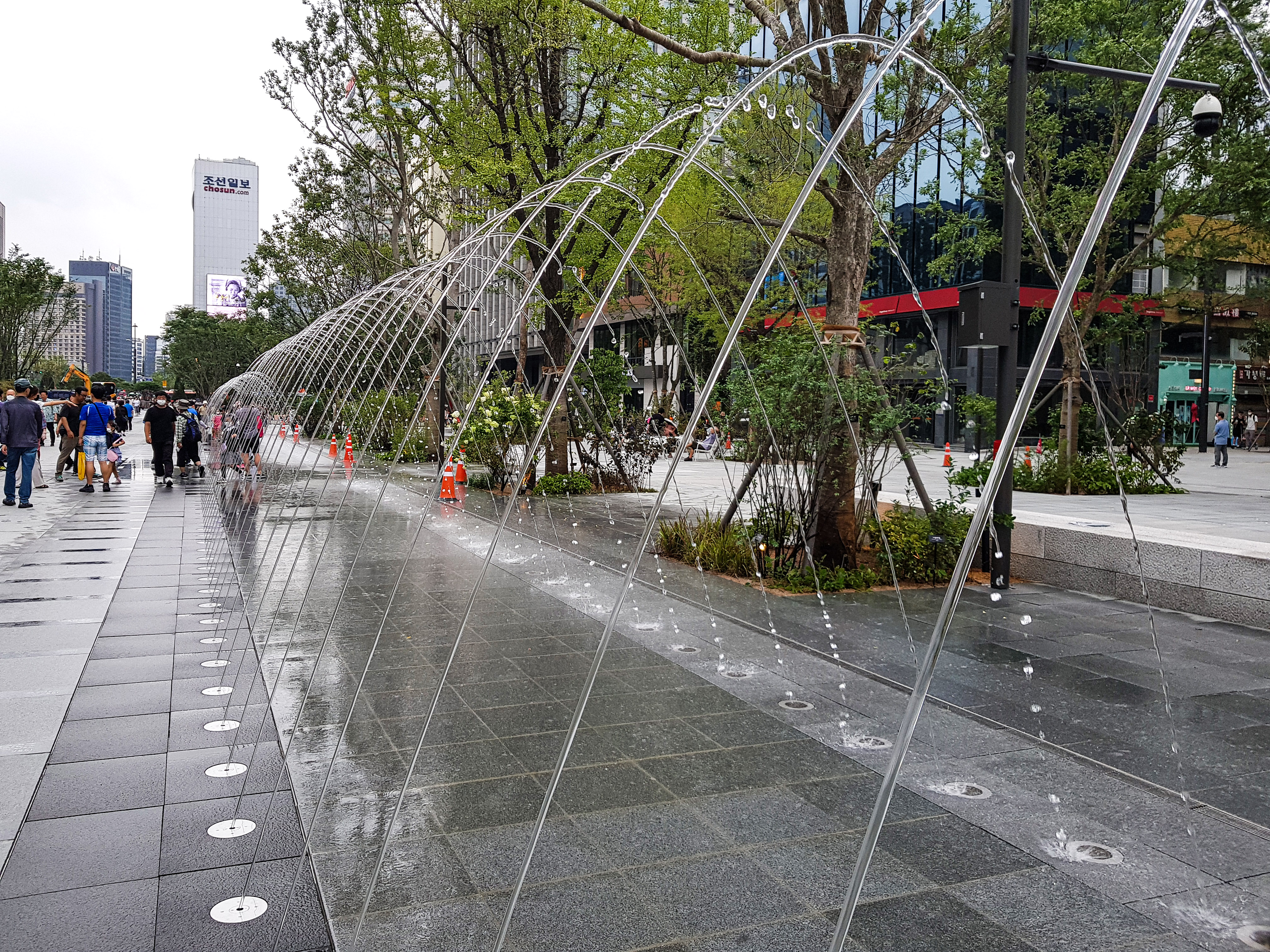 박물관 구경후 다시오니 가동하는 분수 터널과 바닥분수.