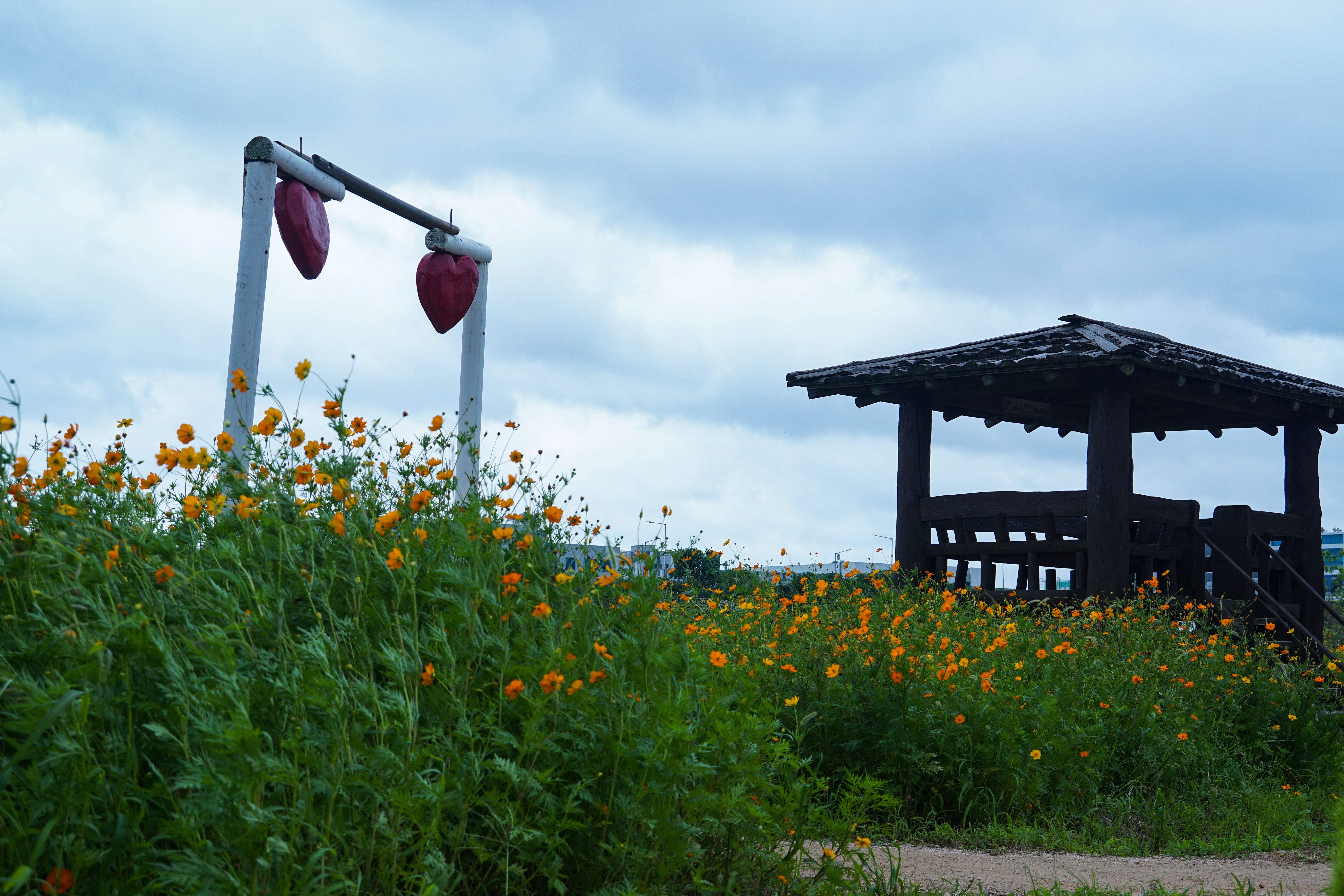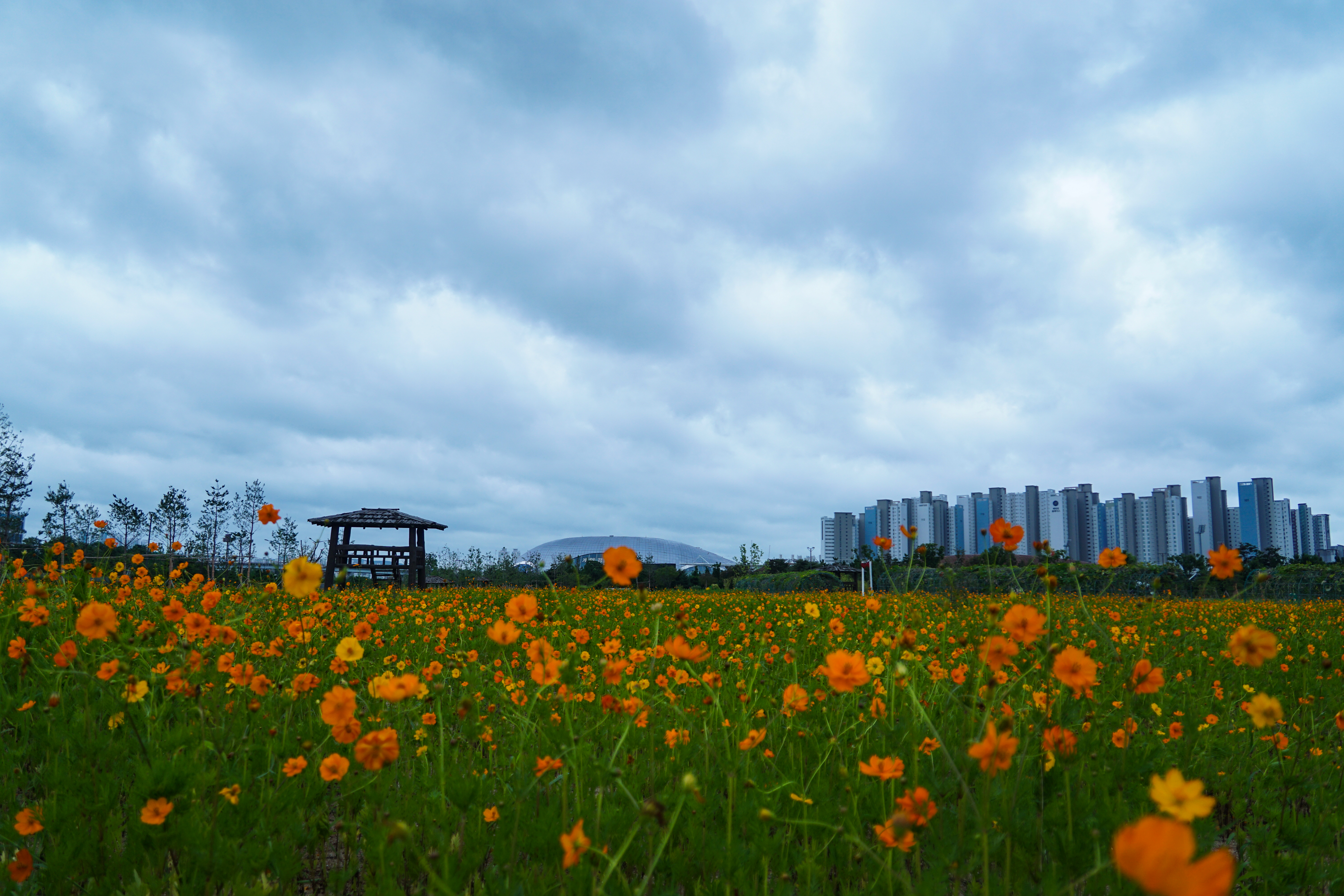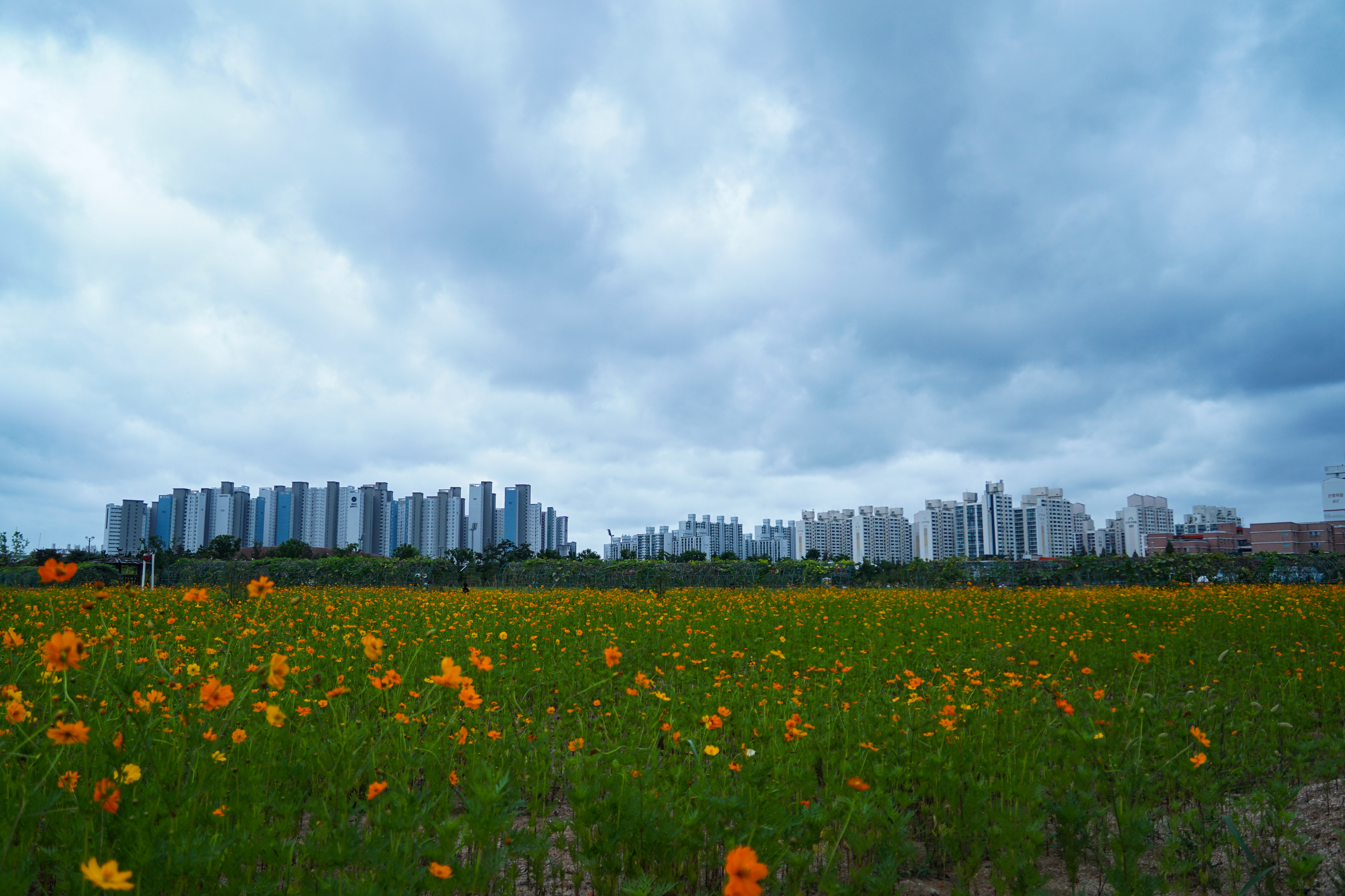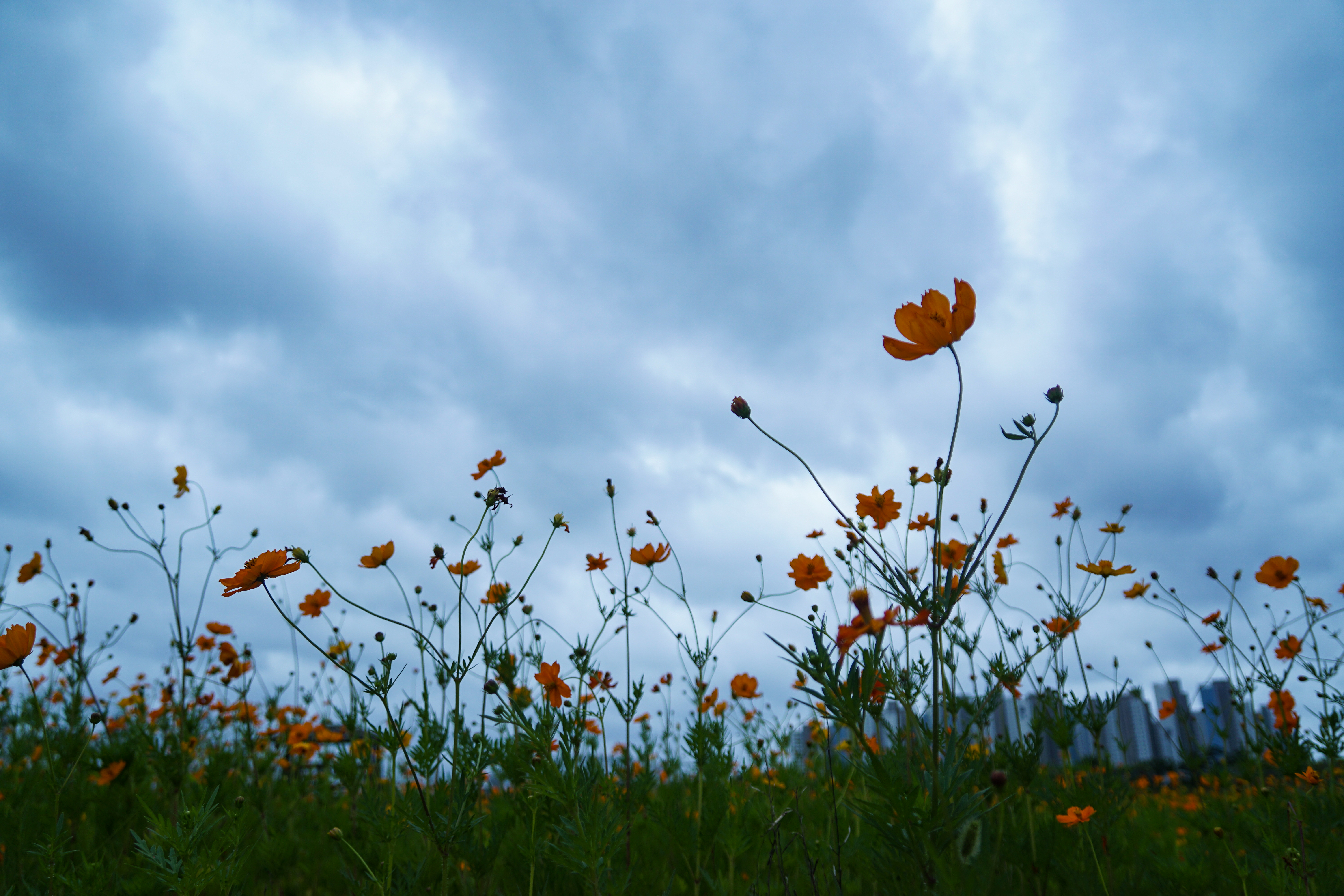 노란코스모스가 이제 막 피기 시작했는지 아직은 듬성듬성 피어있음.