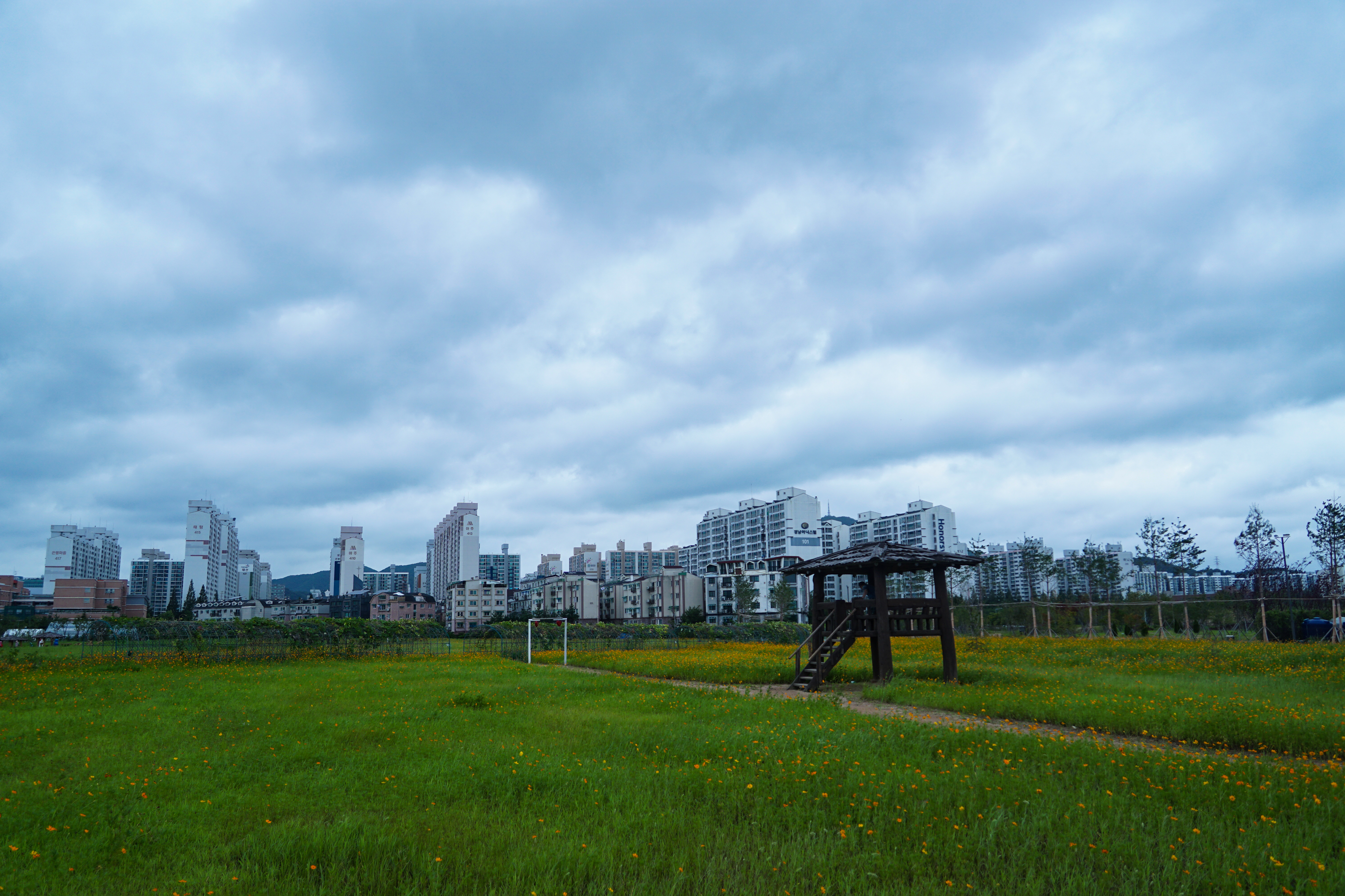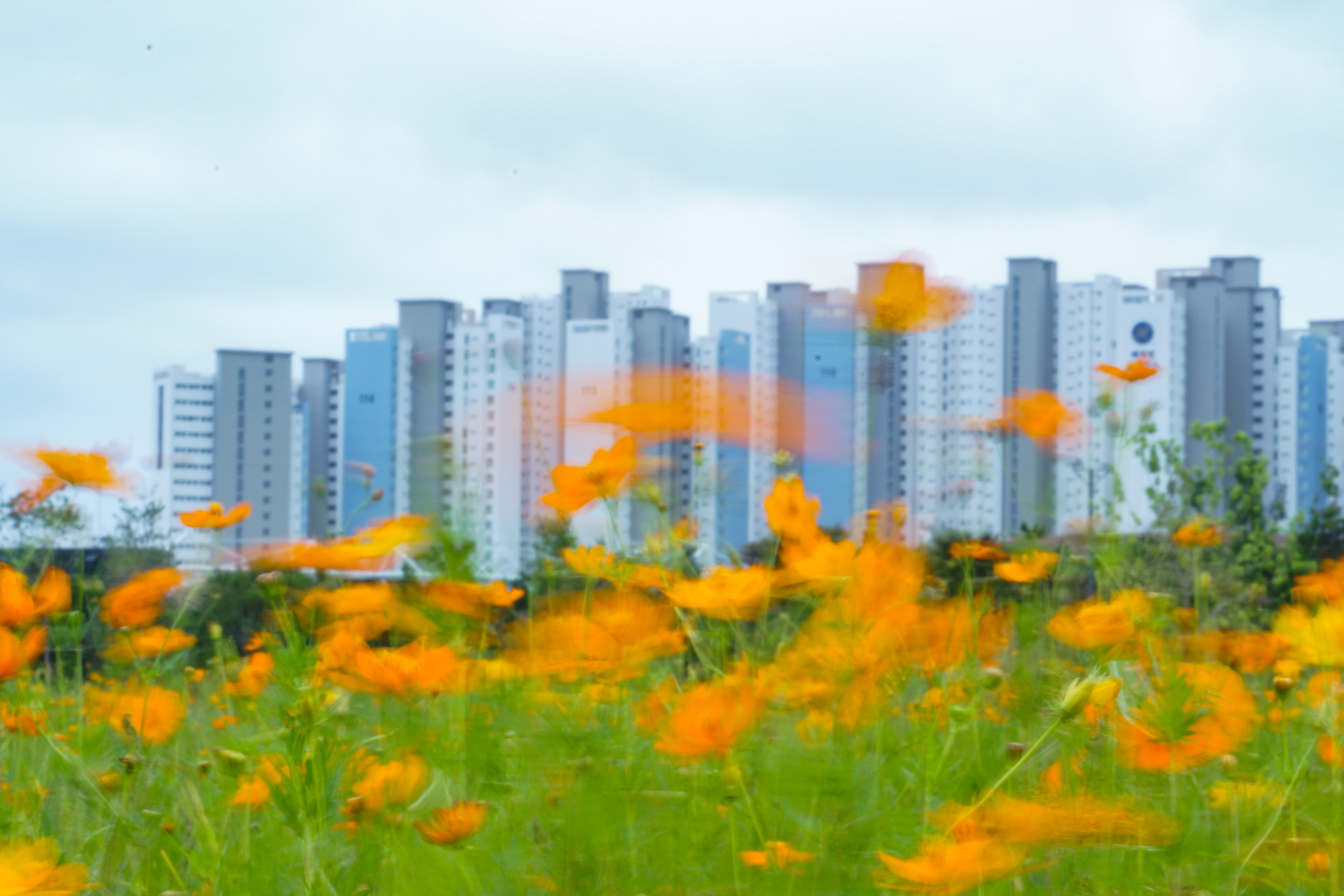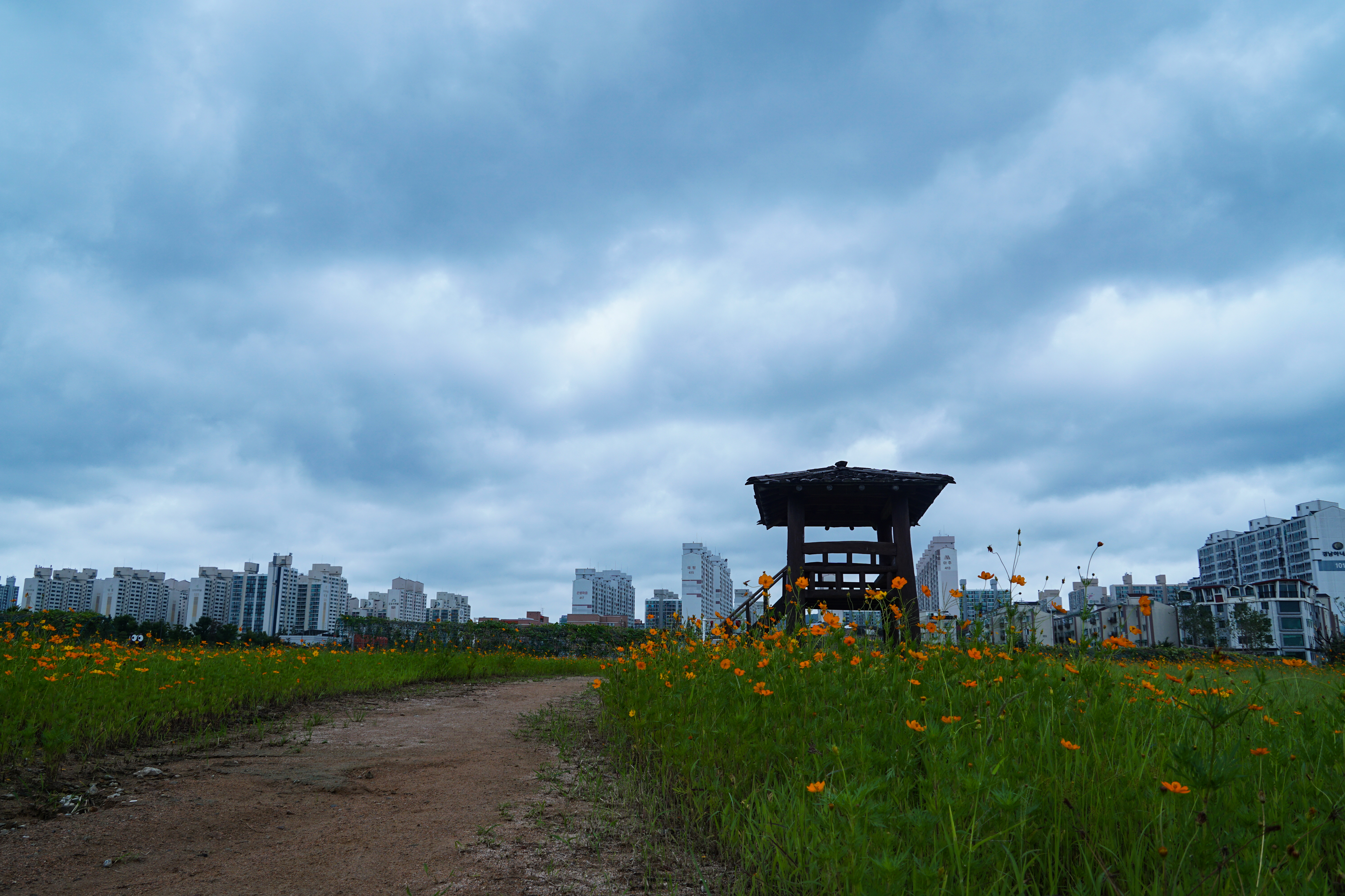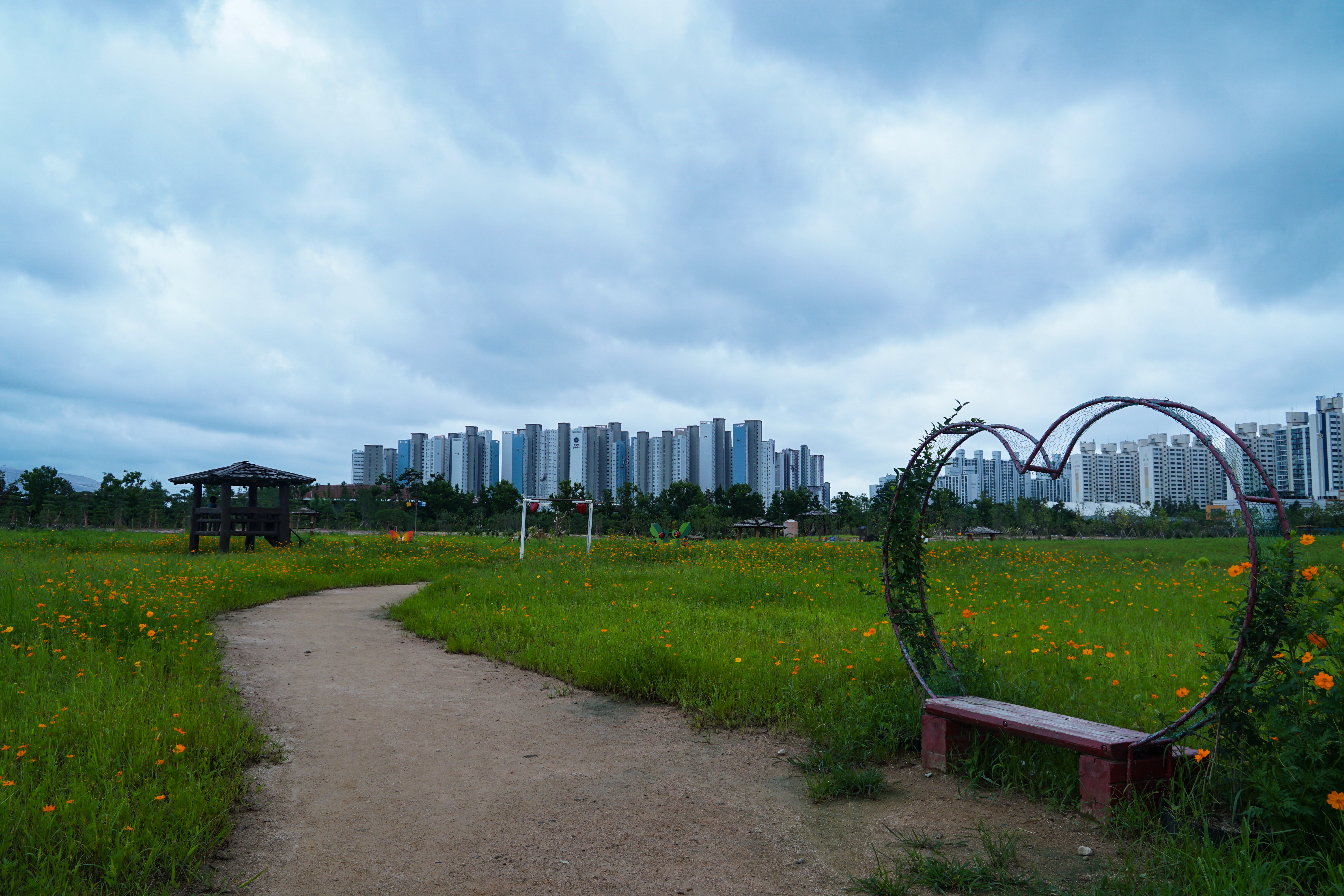 노란코스모스가 이제 막 피기 시작했는지 아직은 듬성듬성 피어있음.