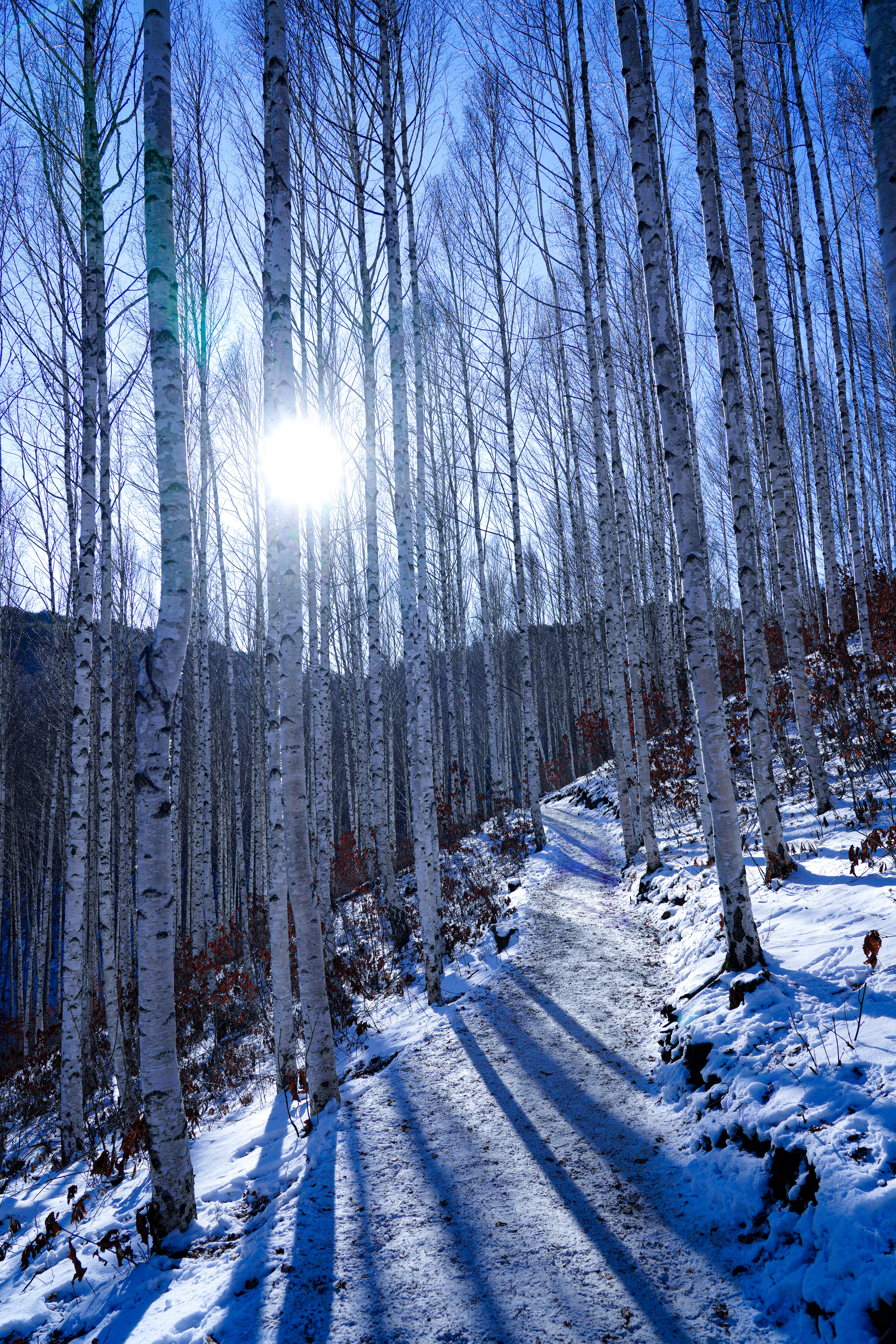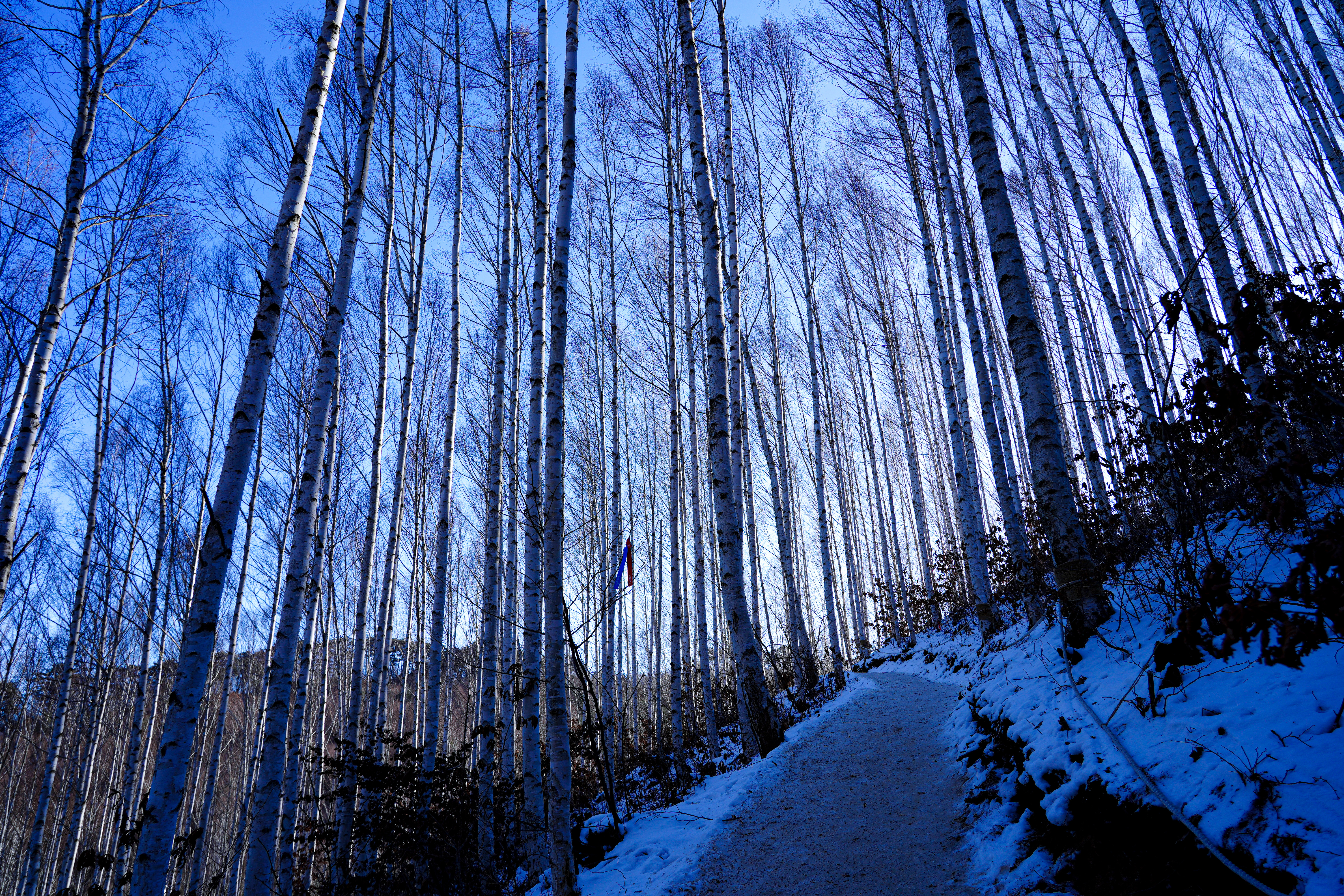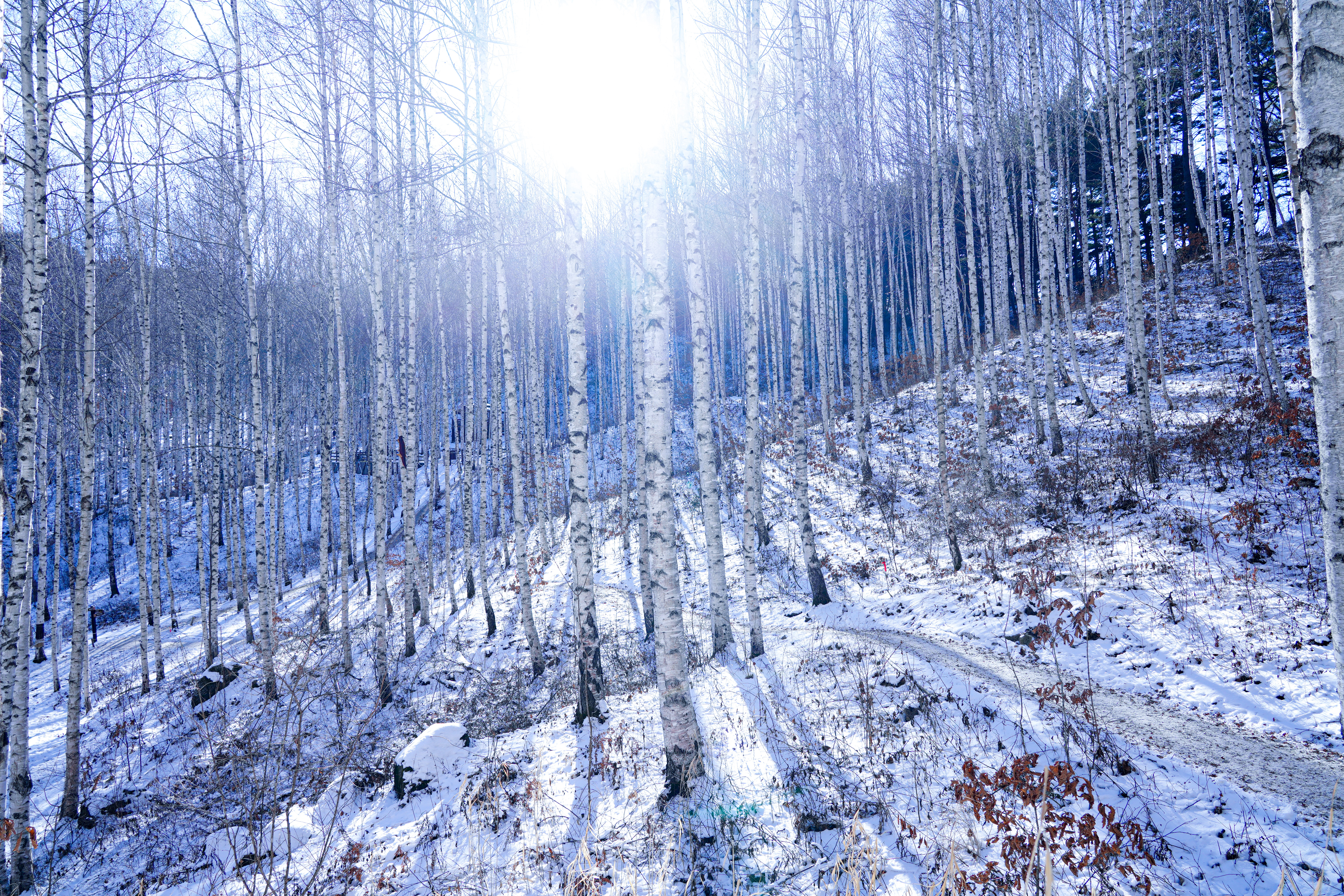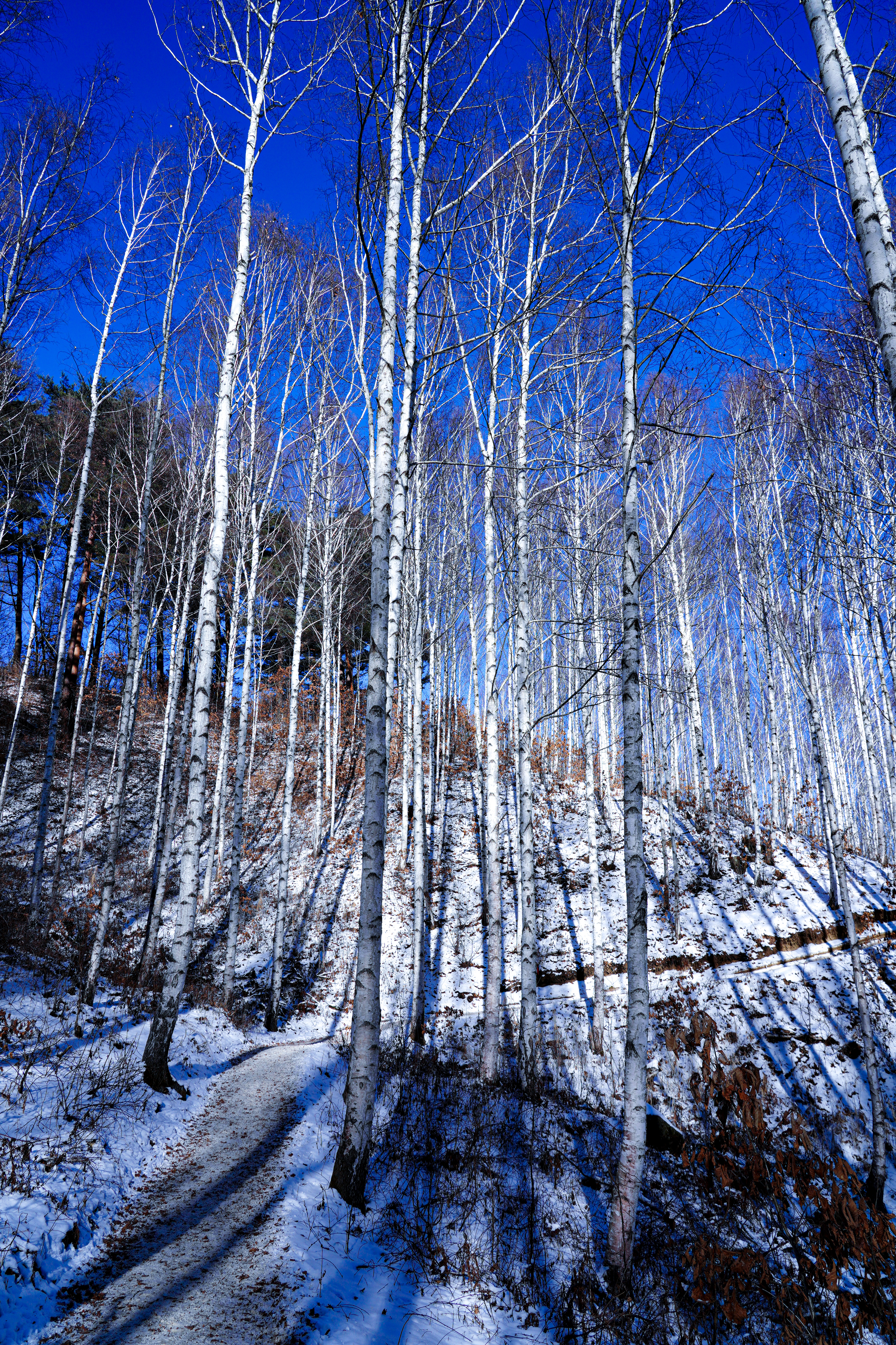 영하 15도 한파에 9시 5분쯤 자작나무숲 오르기.