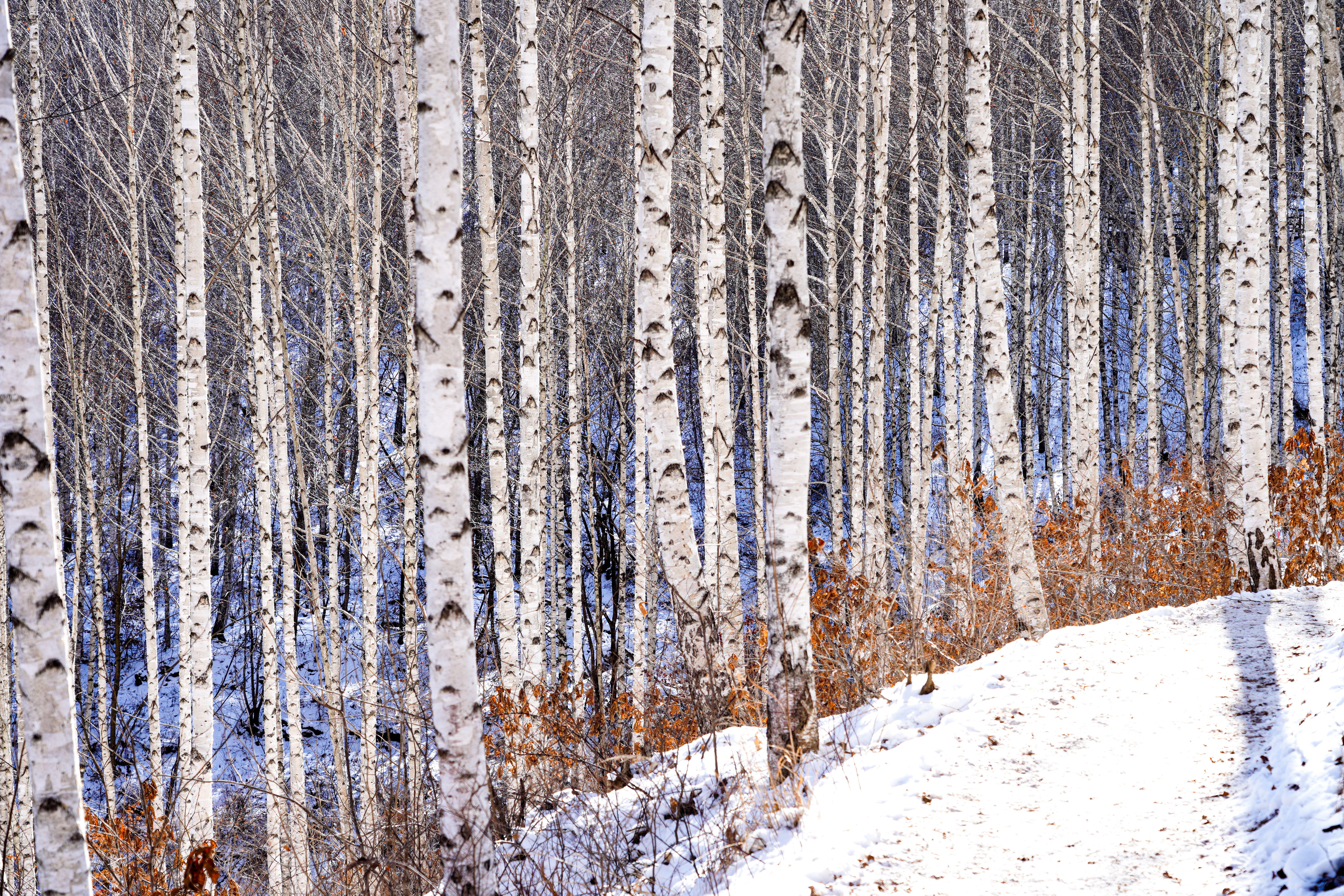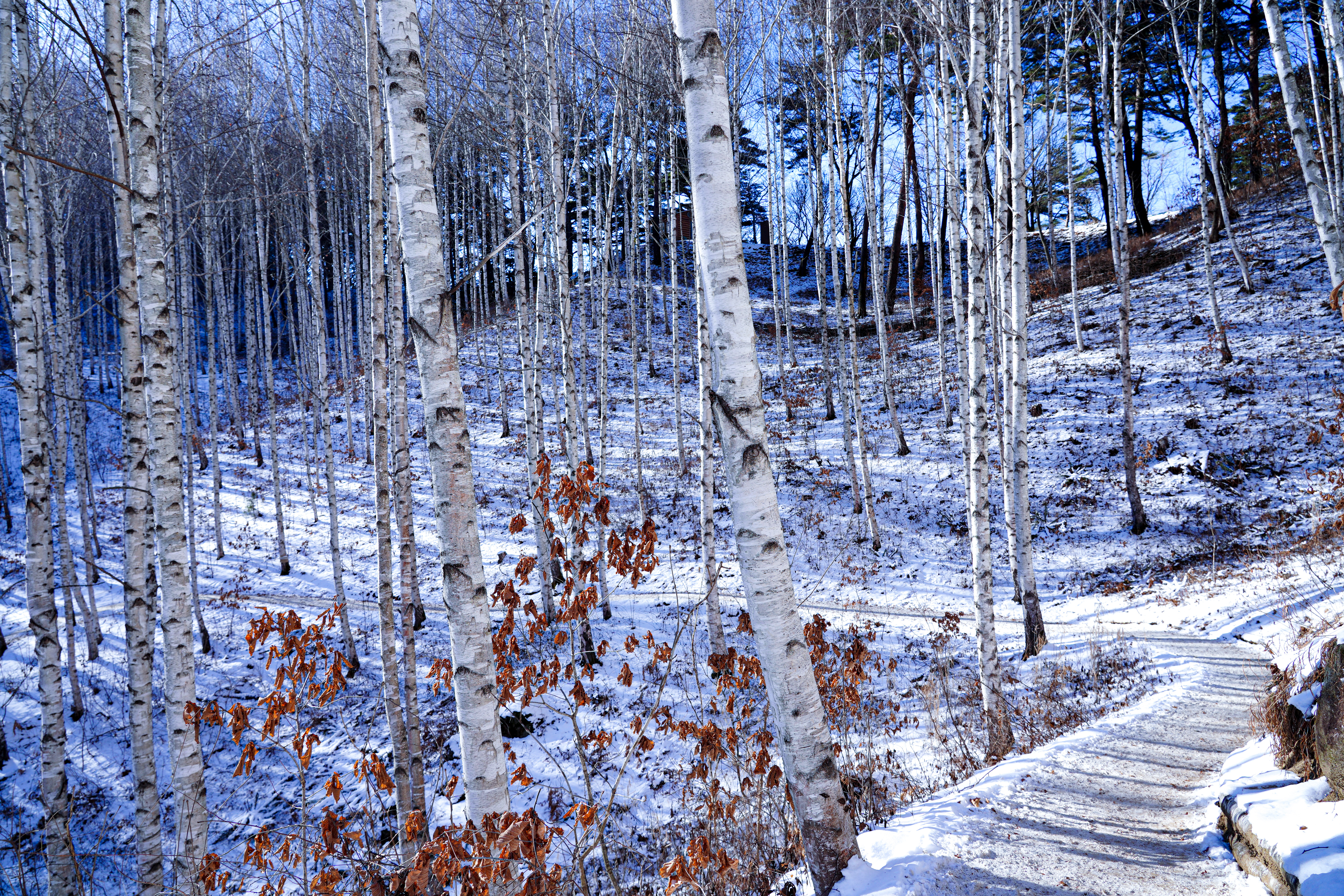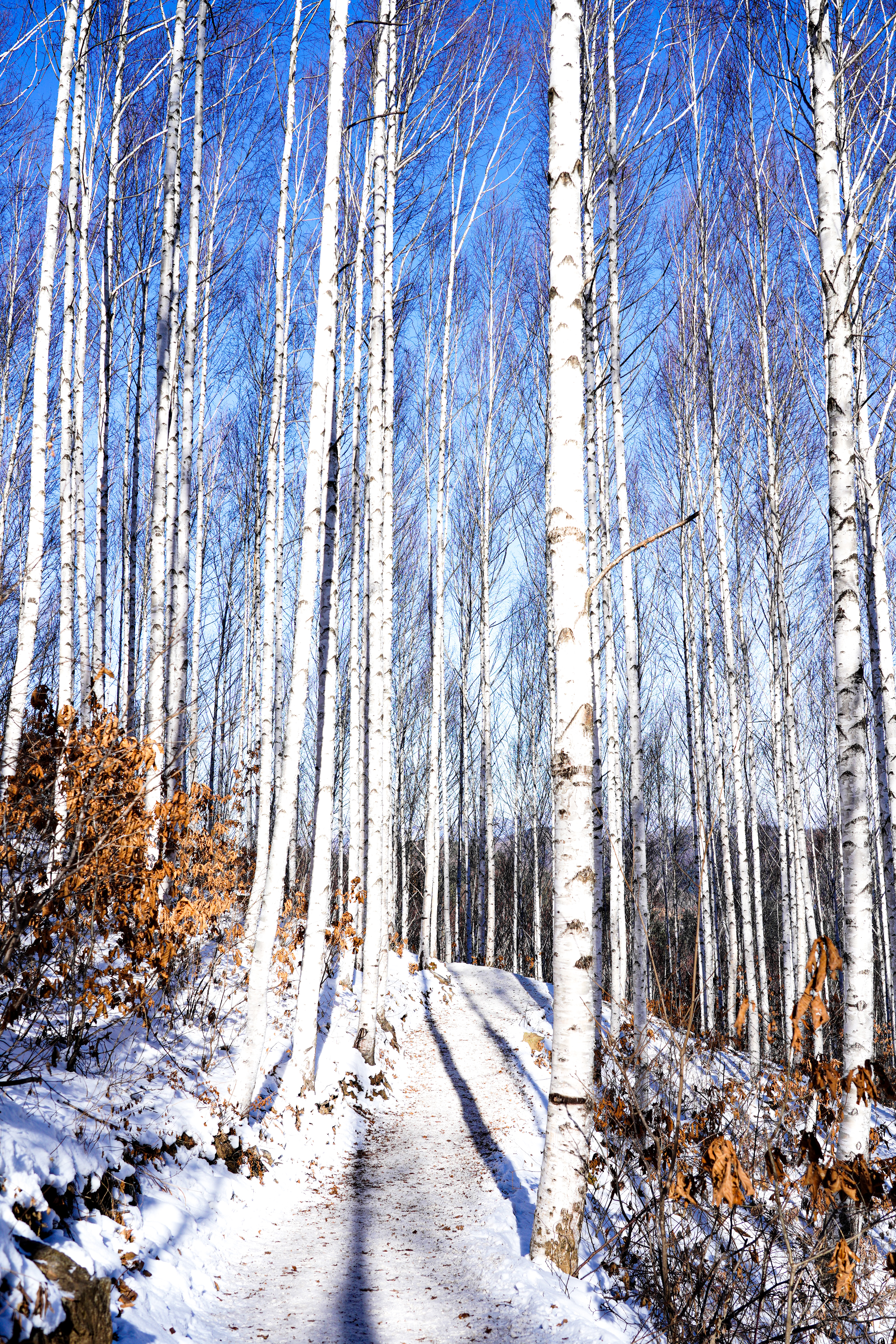 3키로 정도 걸어서 도착한 자작나무숲의 겨울풍경.