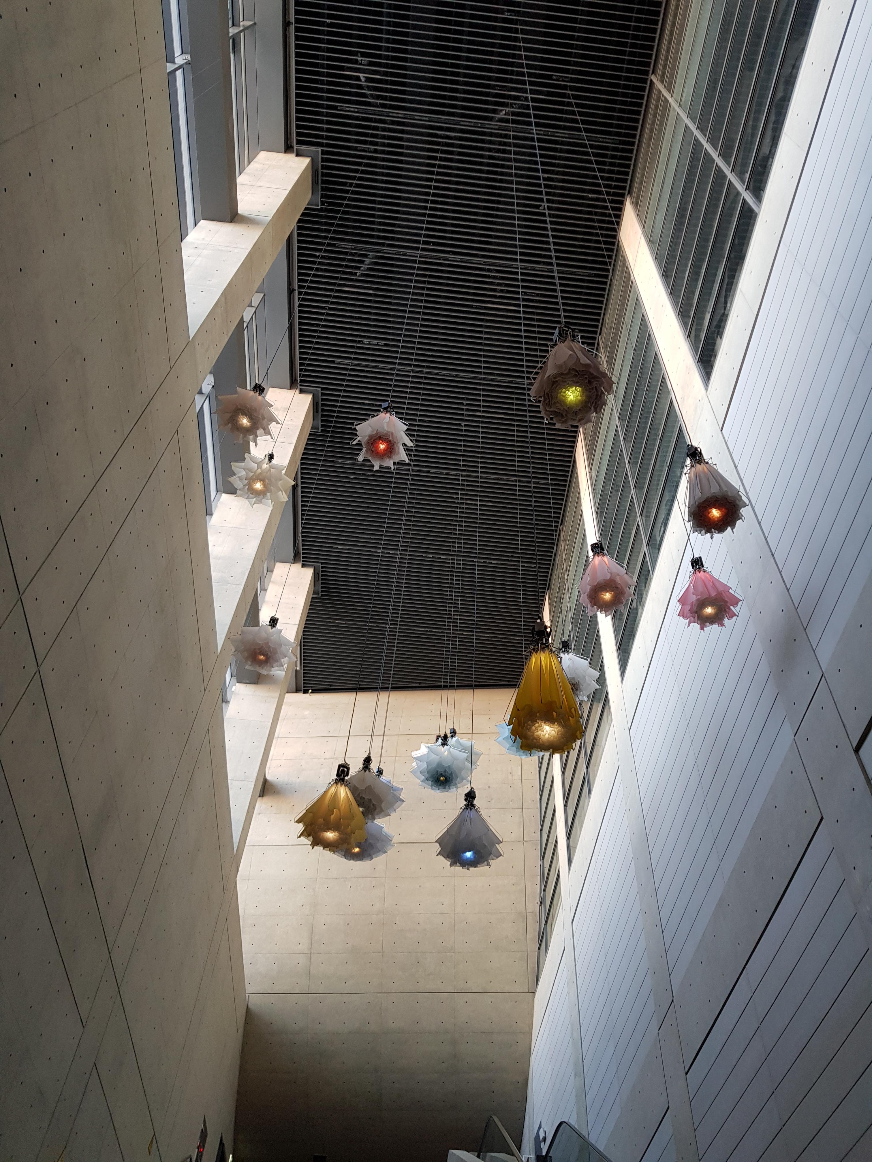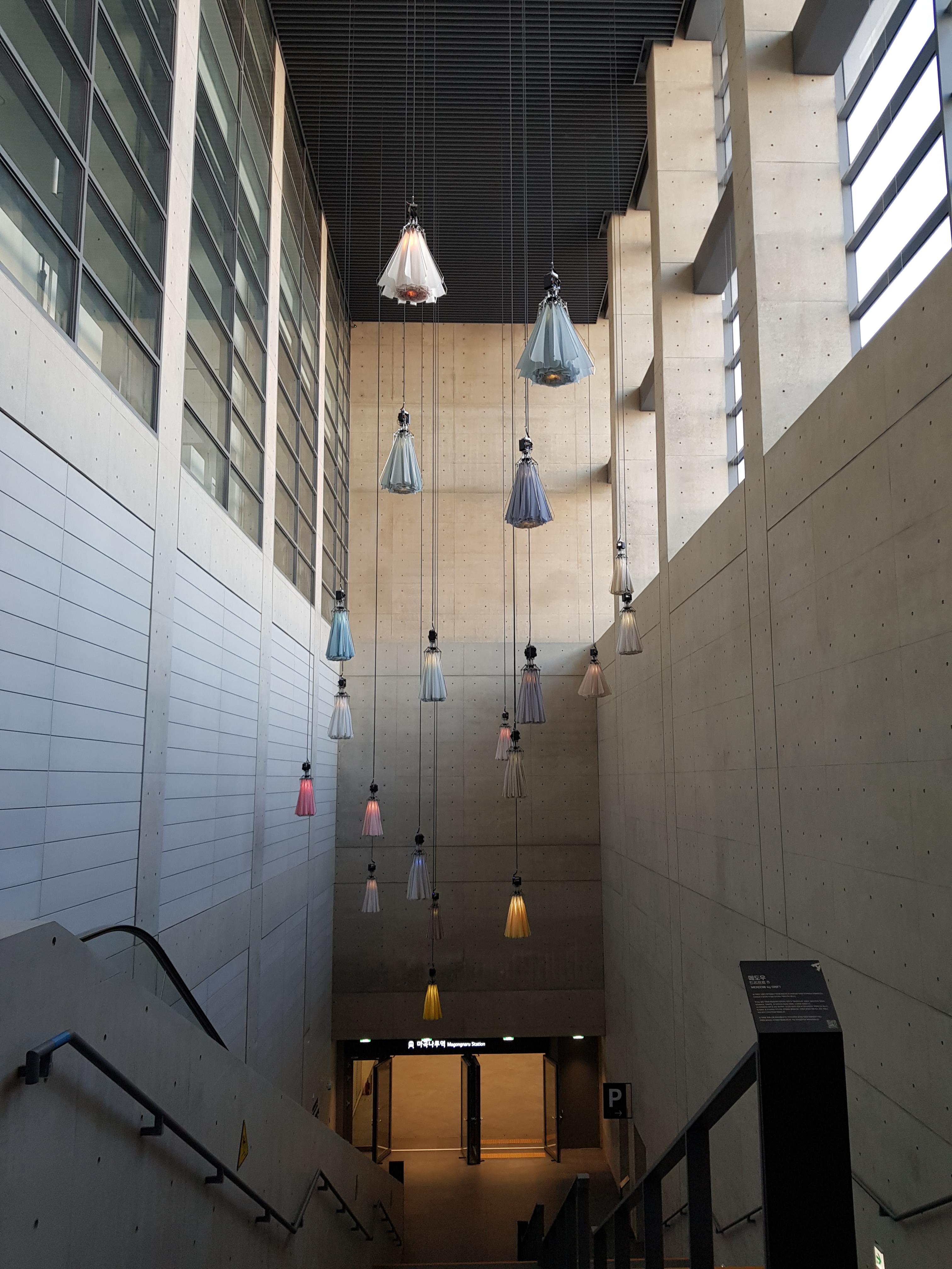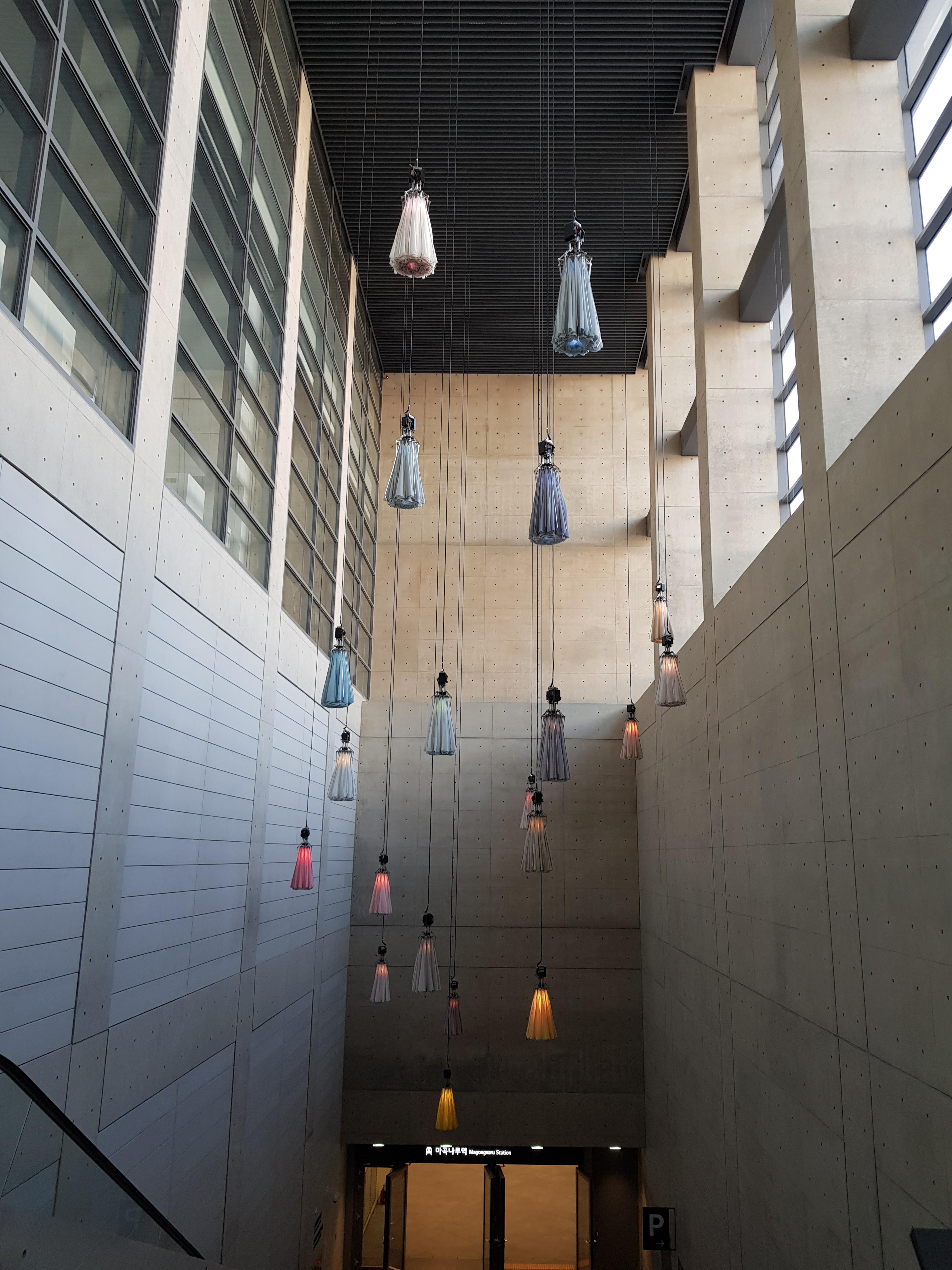 마곡나루역과 연결된 통로에 있는 꽃장식 조명.