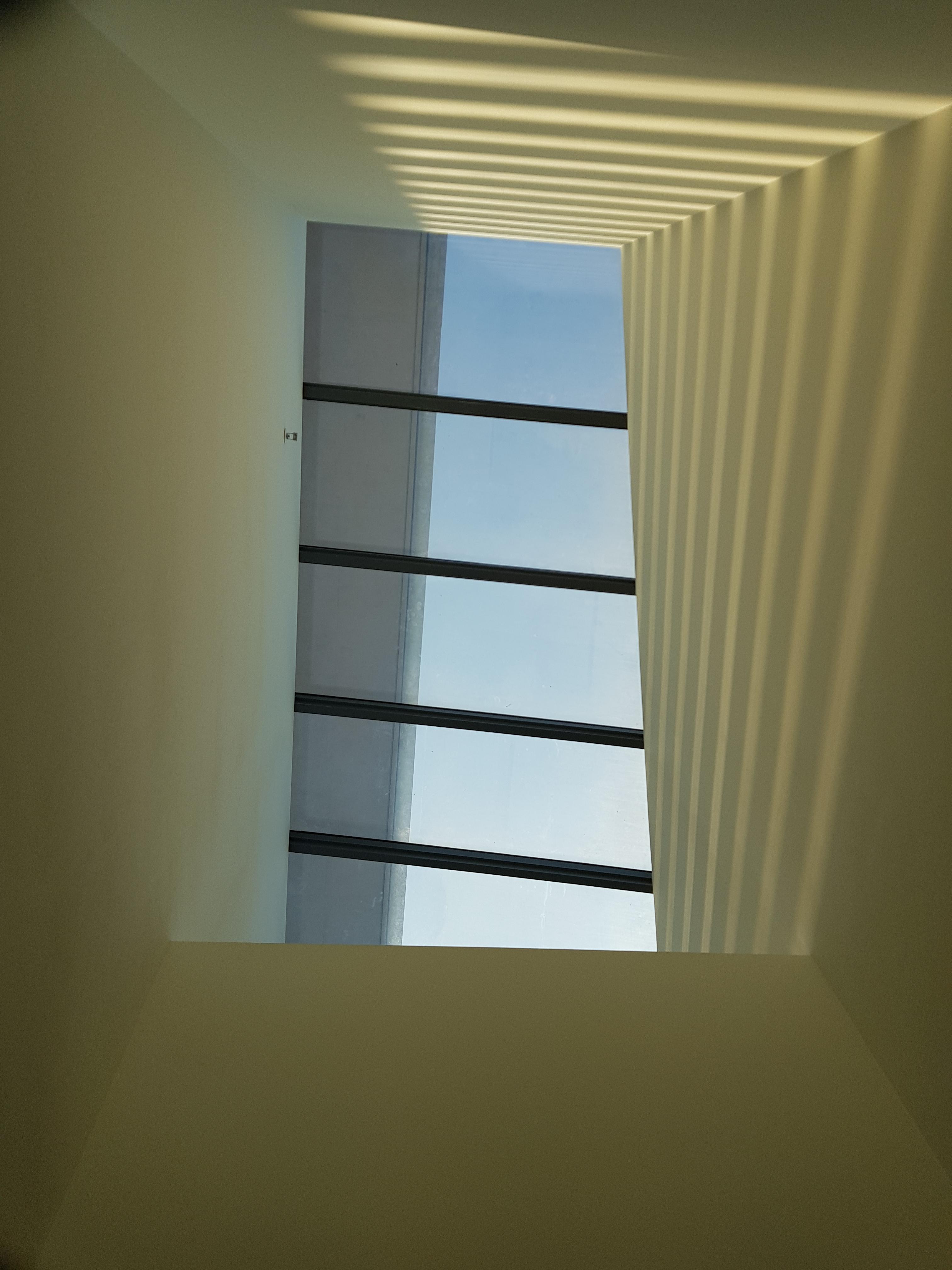 하늘이 보이는 유리 천장을 통해 들어오는 빛.