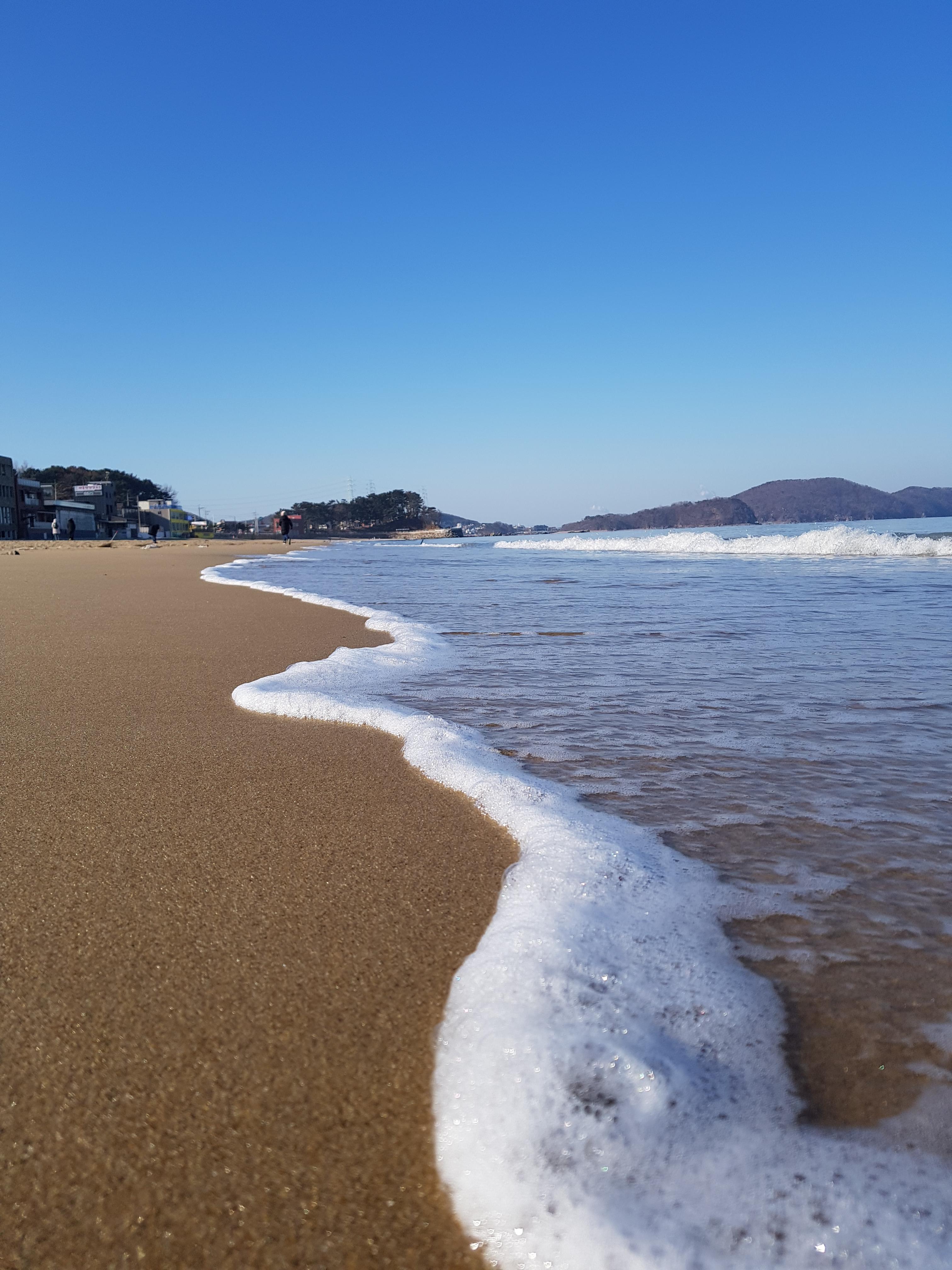 공용주차장에 주차후 부드러운 모래위를 걸으며 천천히 걸어보기.