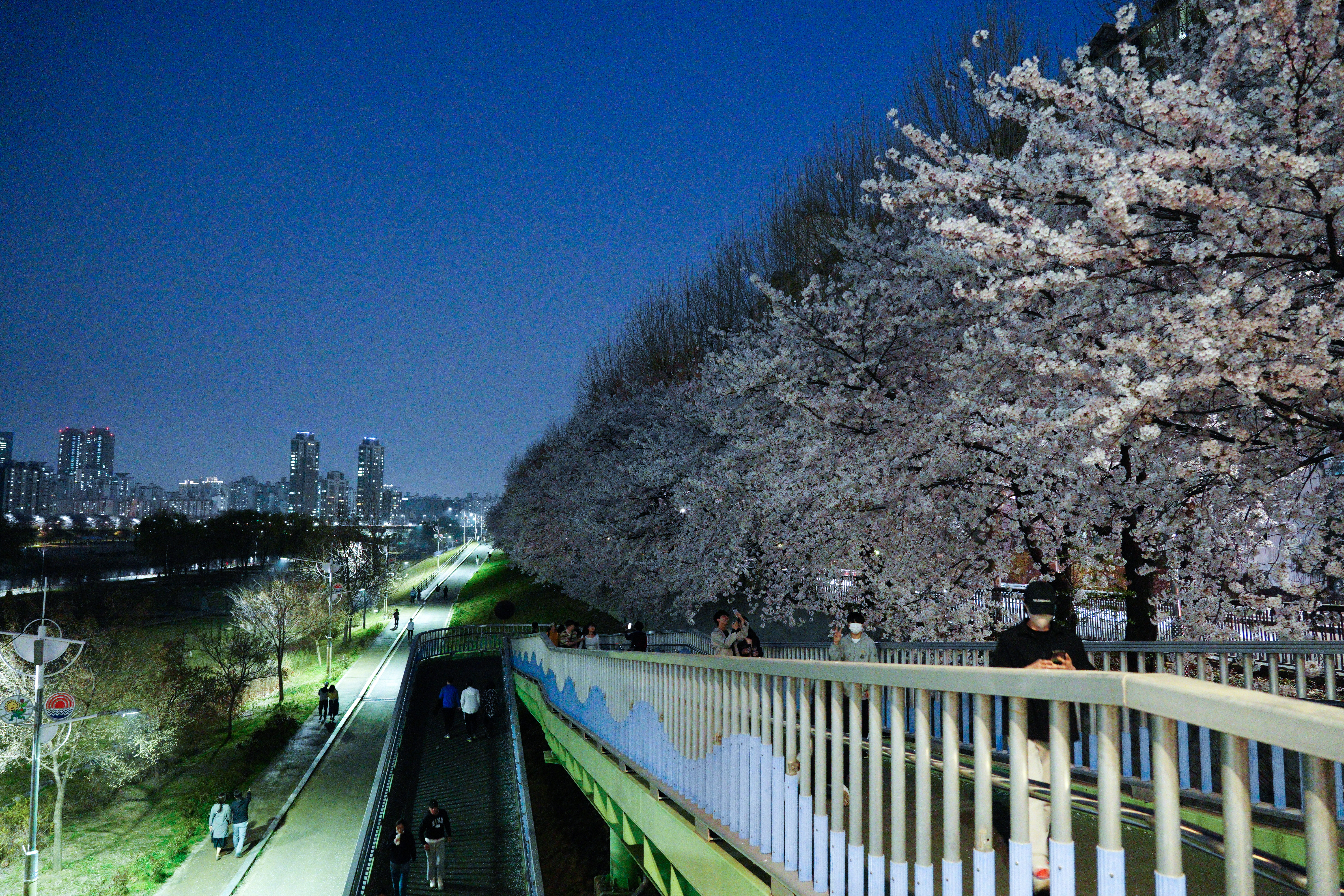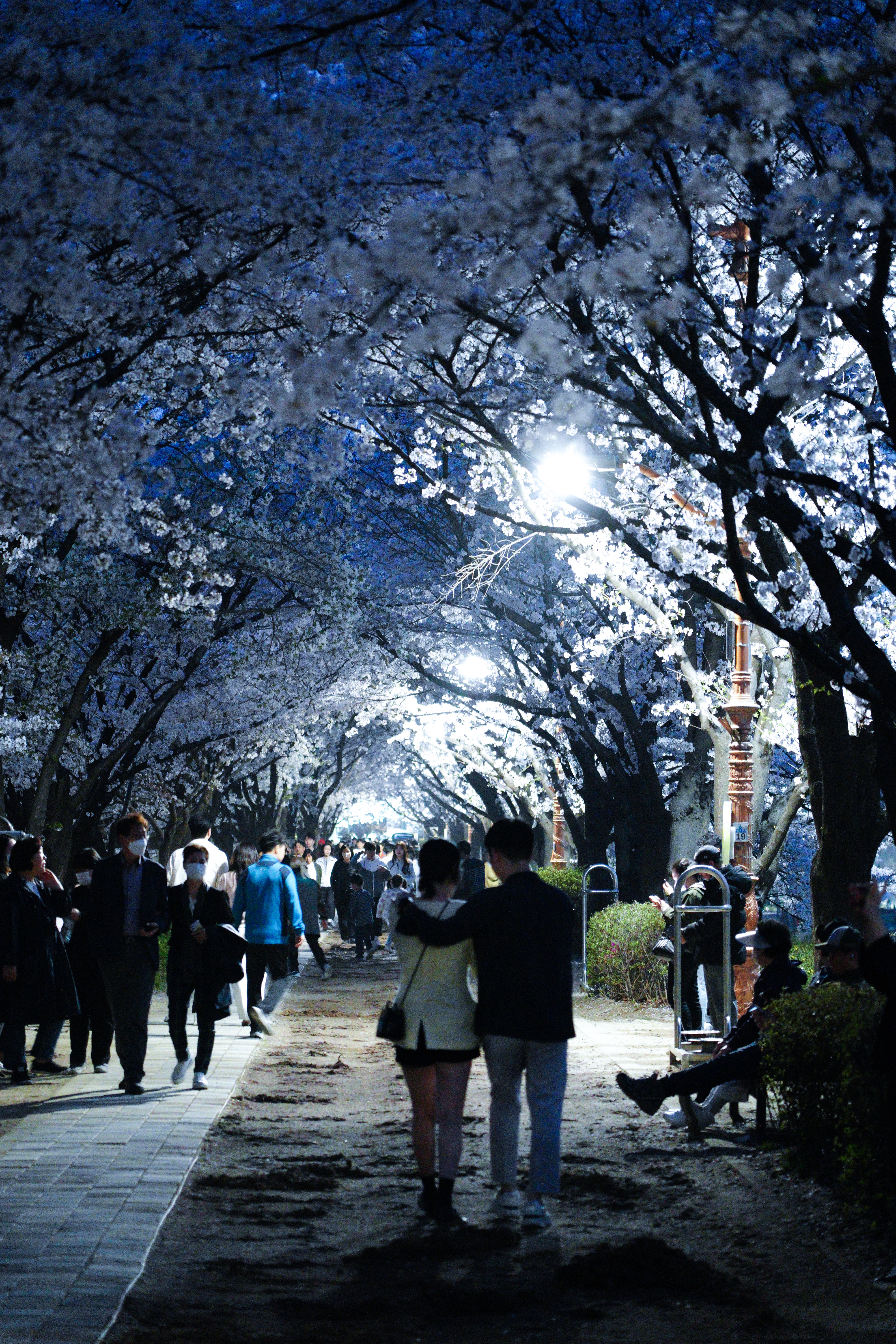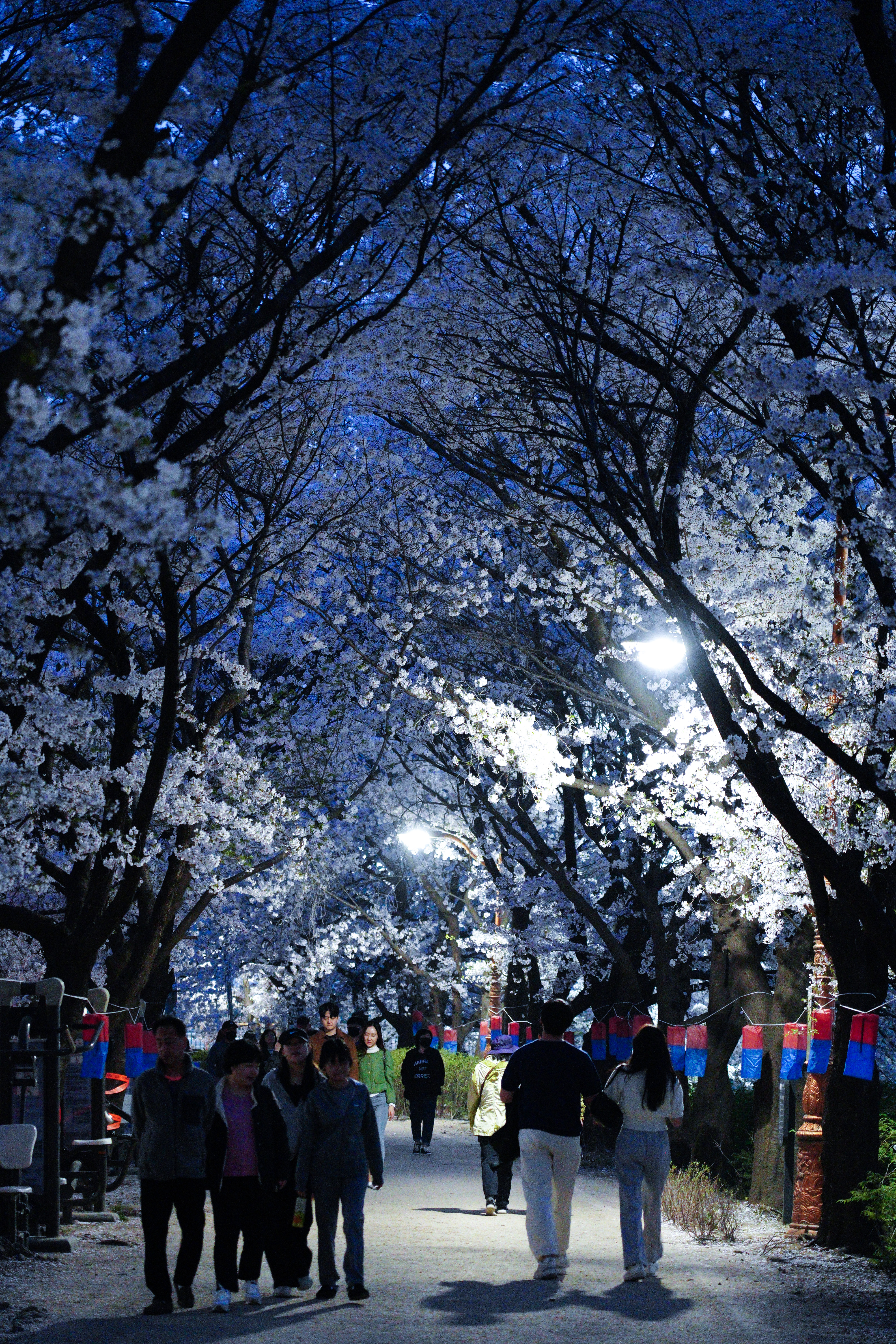 여의도 보단 조명이 아쉽지만 좁은길 가득 벚꽃 터널.