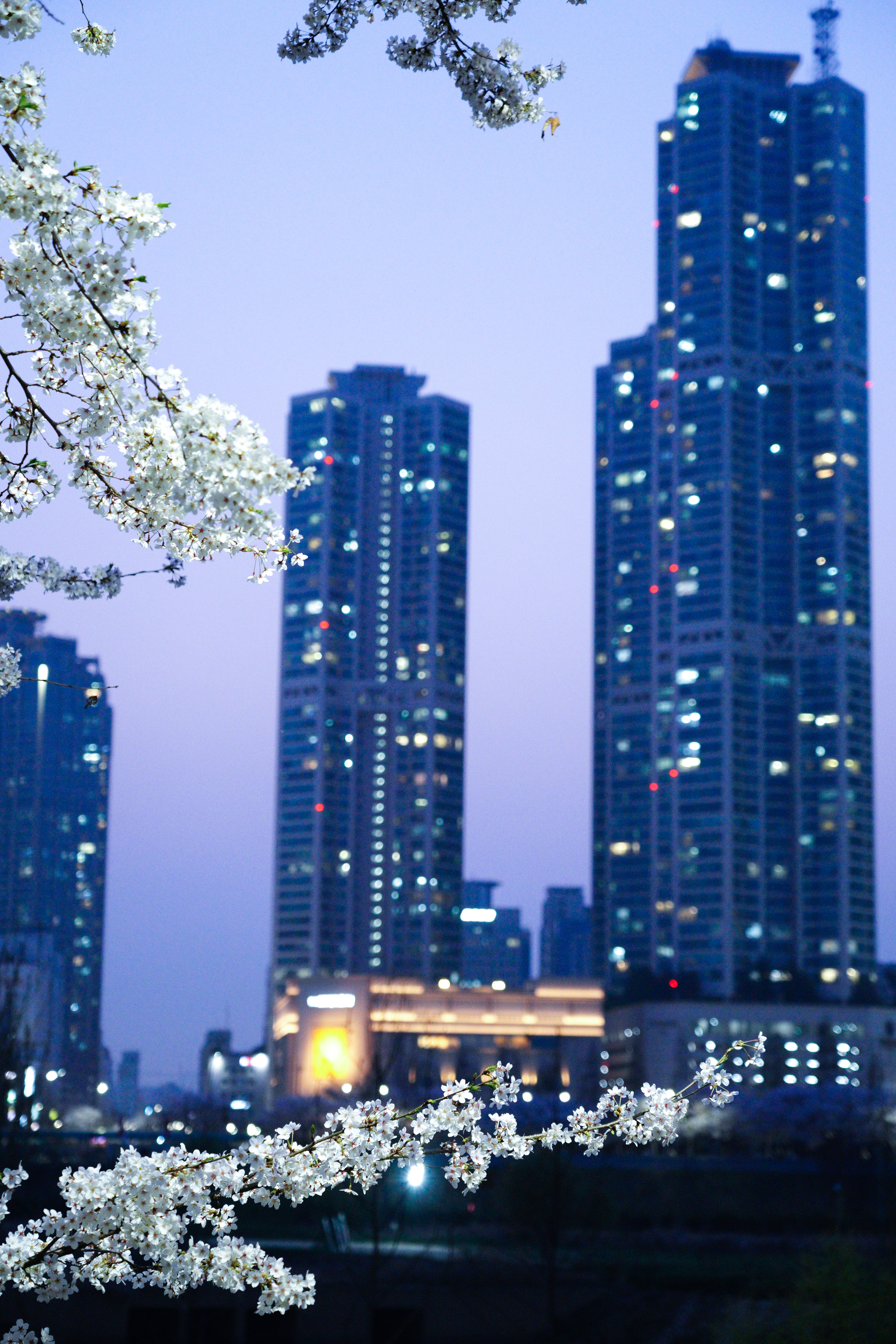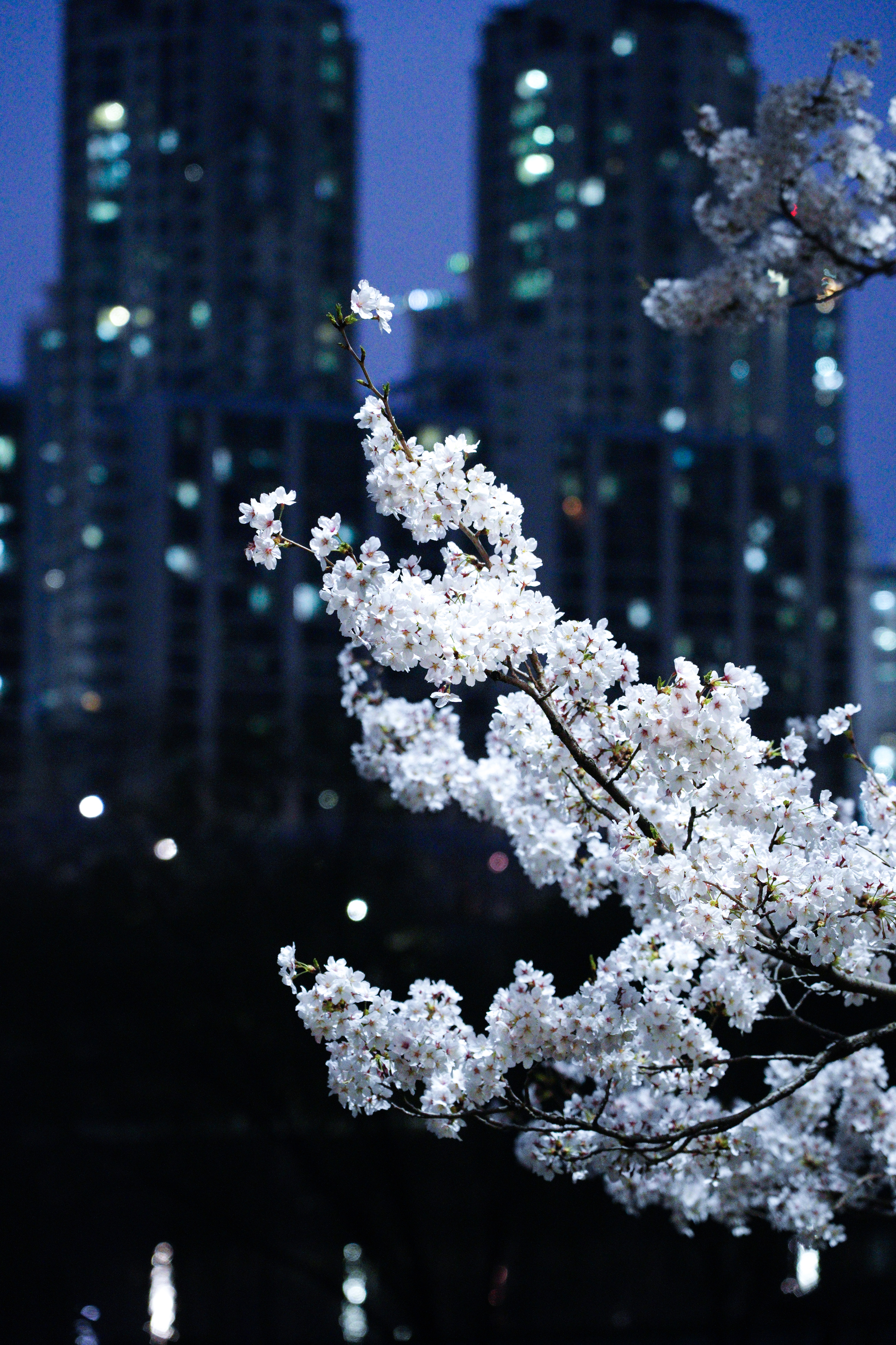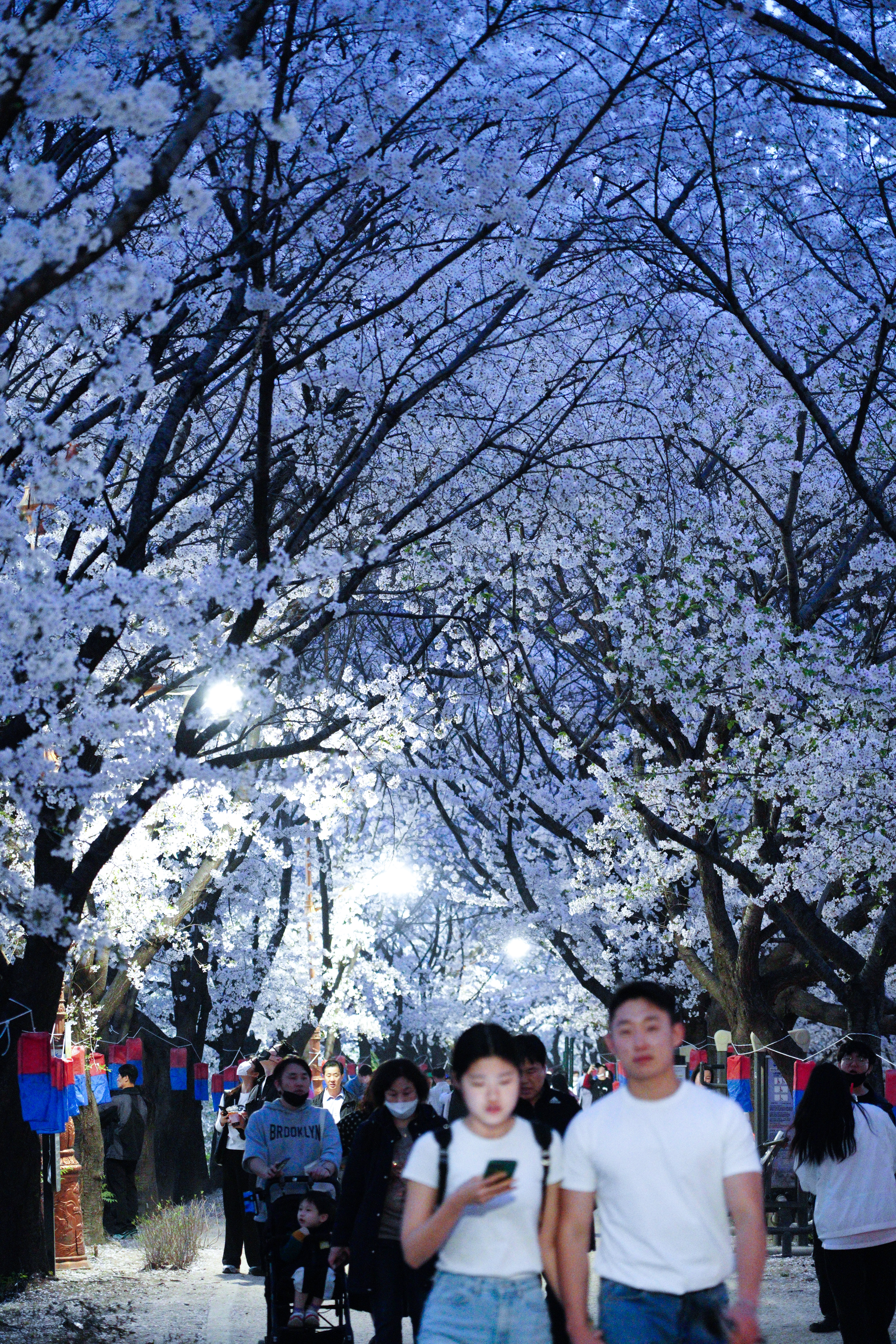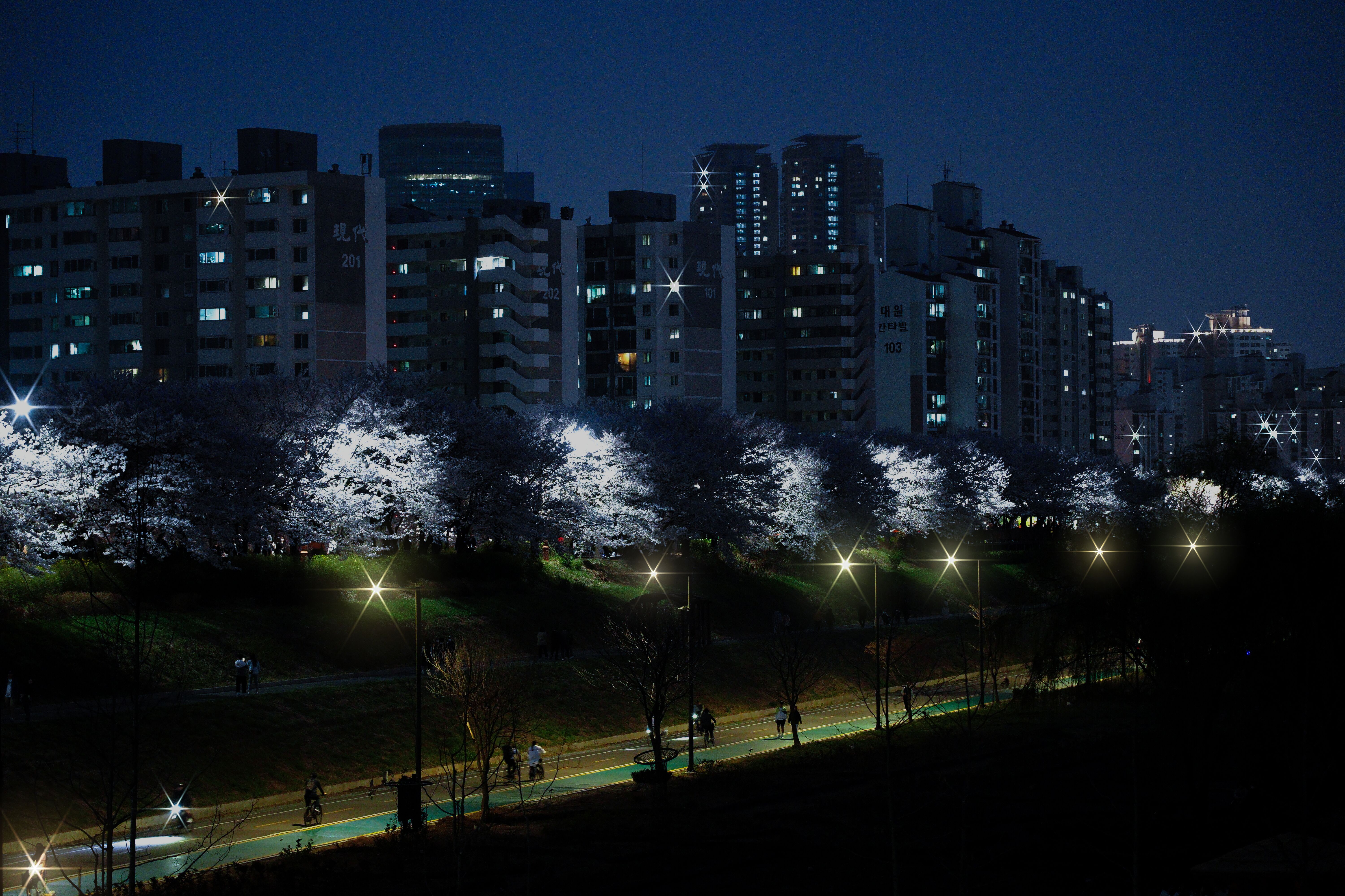 여의도 보단 조명이 아쉽지만 좁은길 가득 벚꽃 터널.
