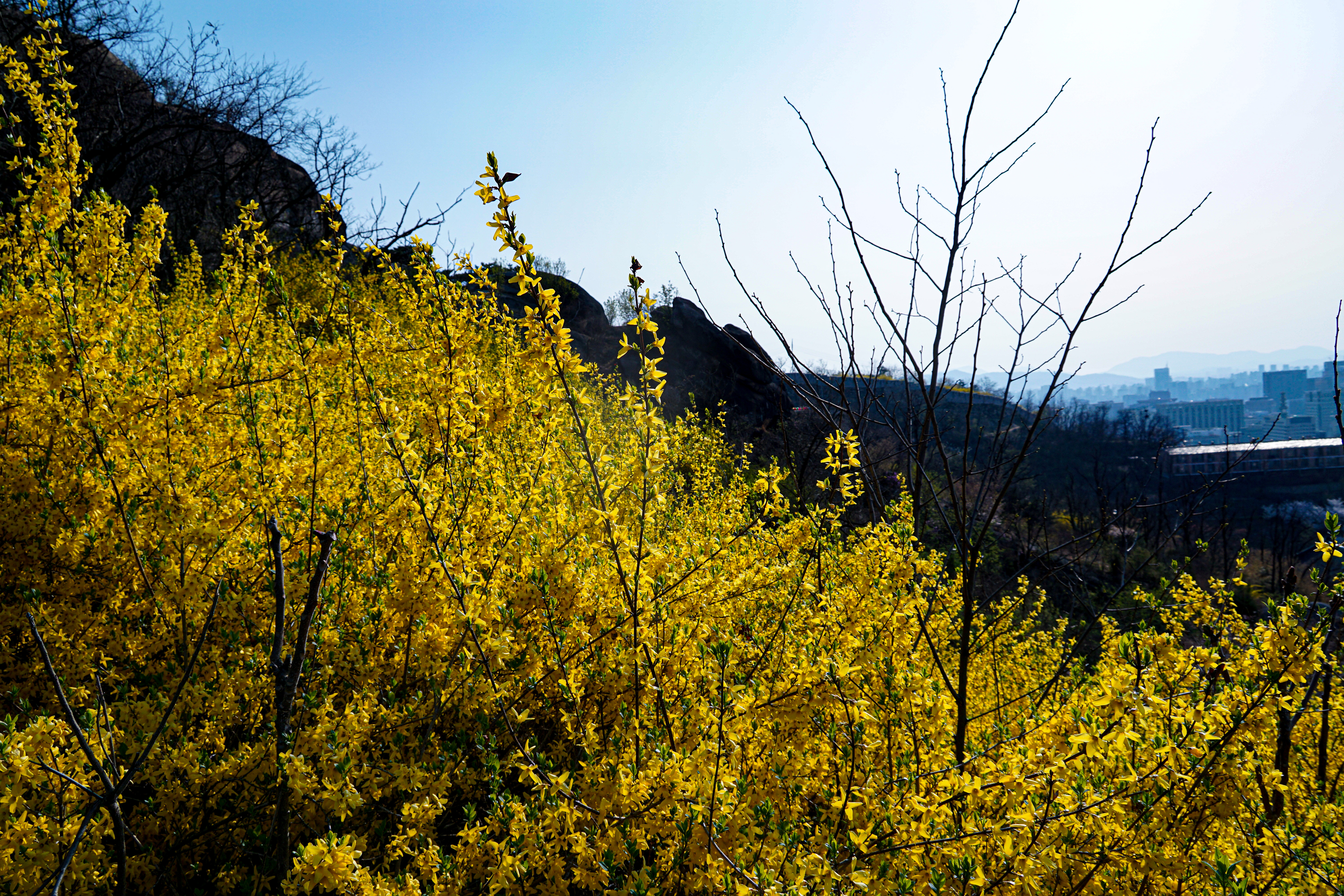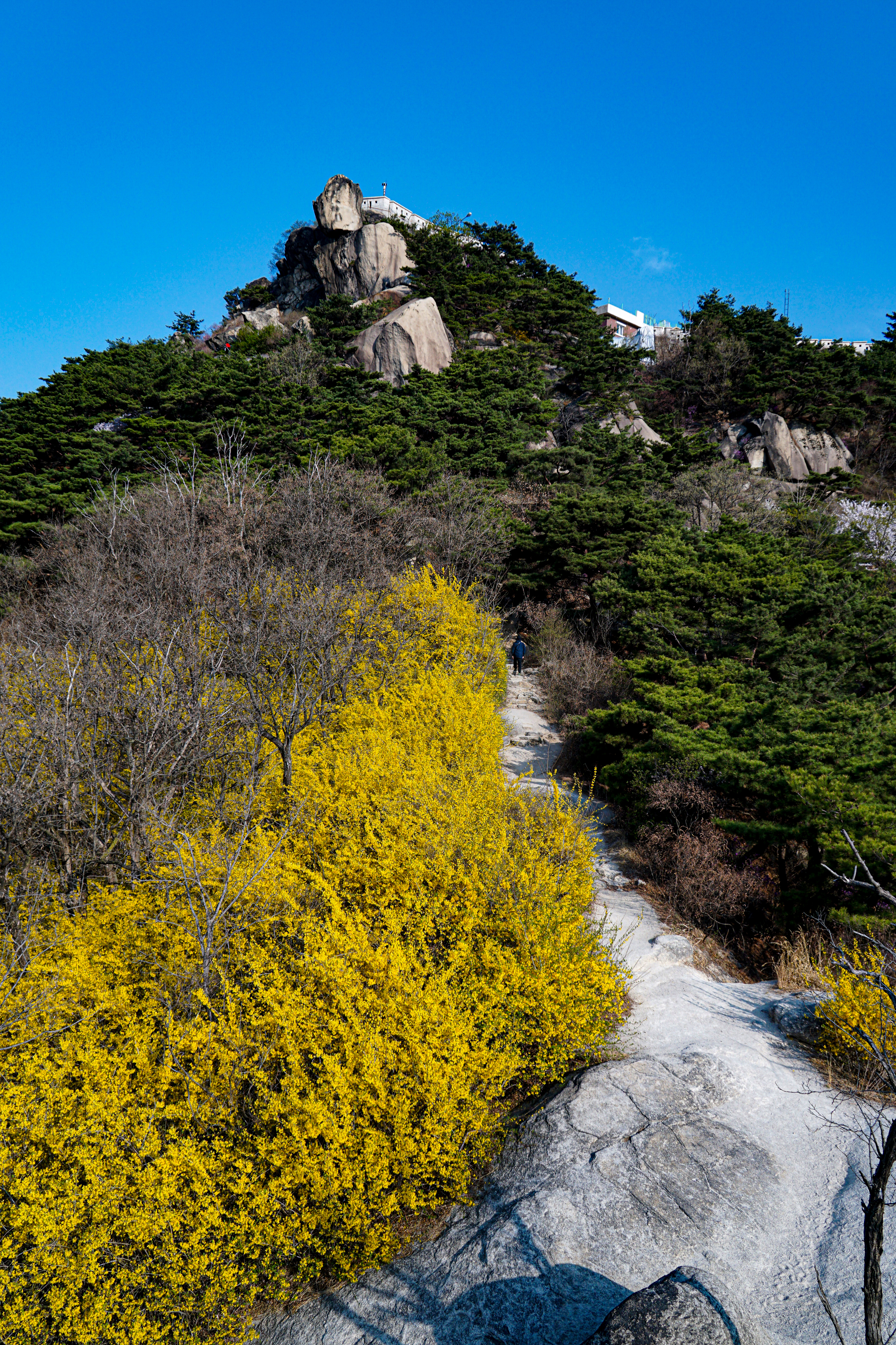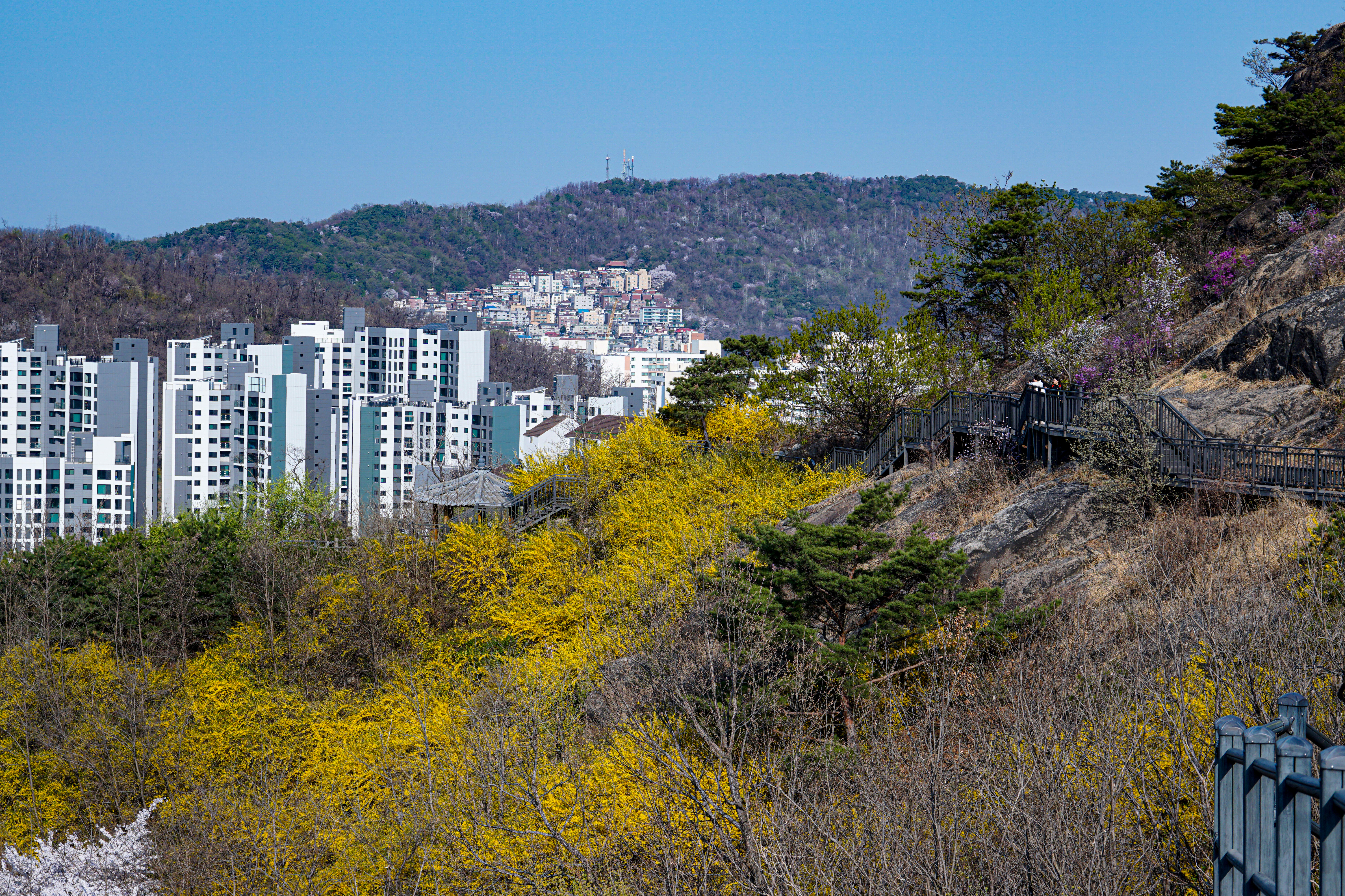 인왕산 해골바위부터 하늘다리까지 펼쳐있는 개나리 군락지.