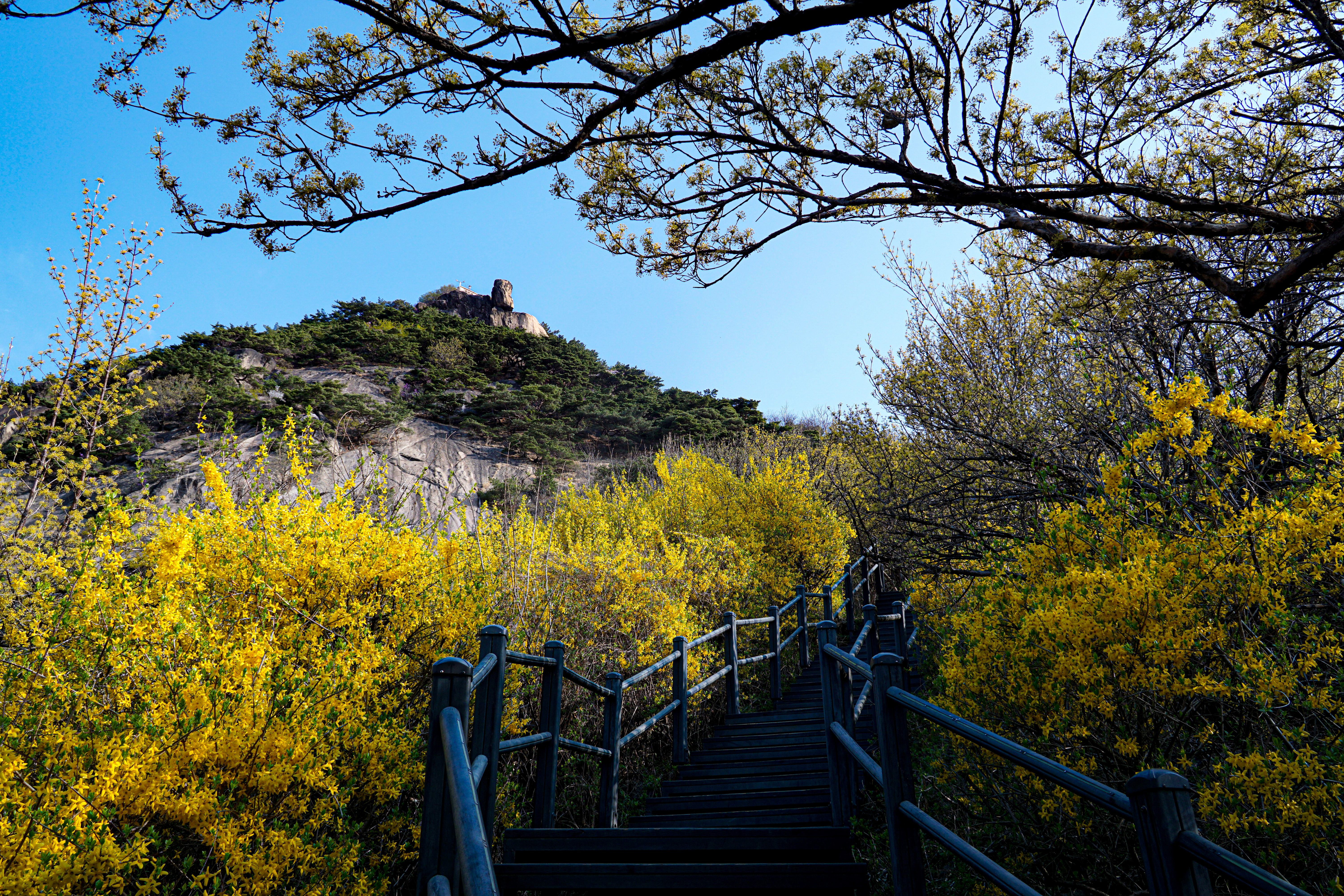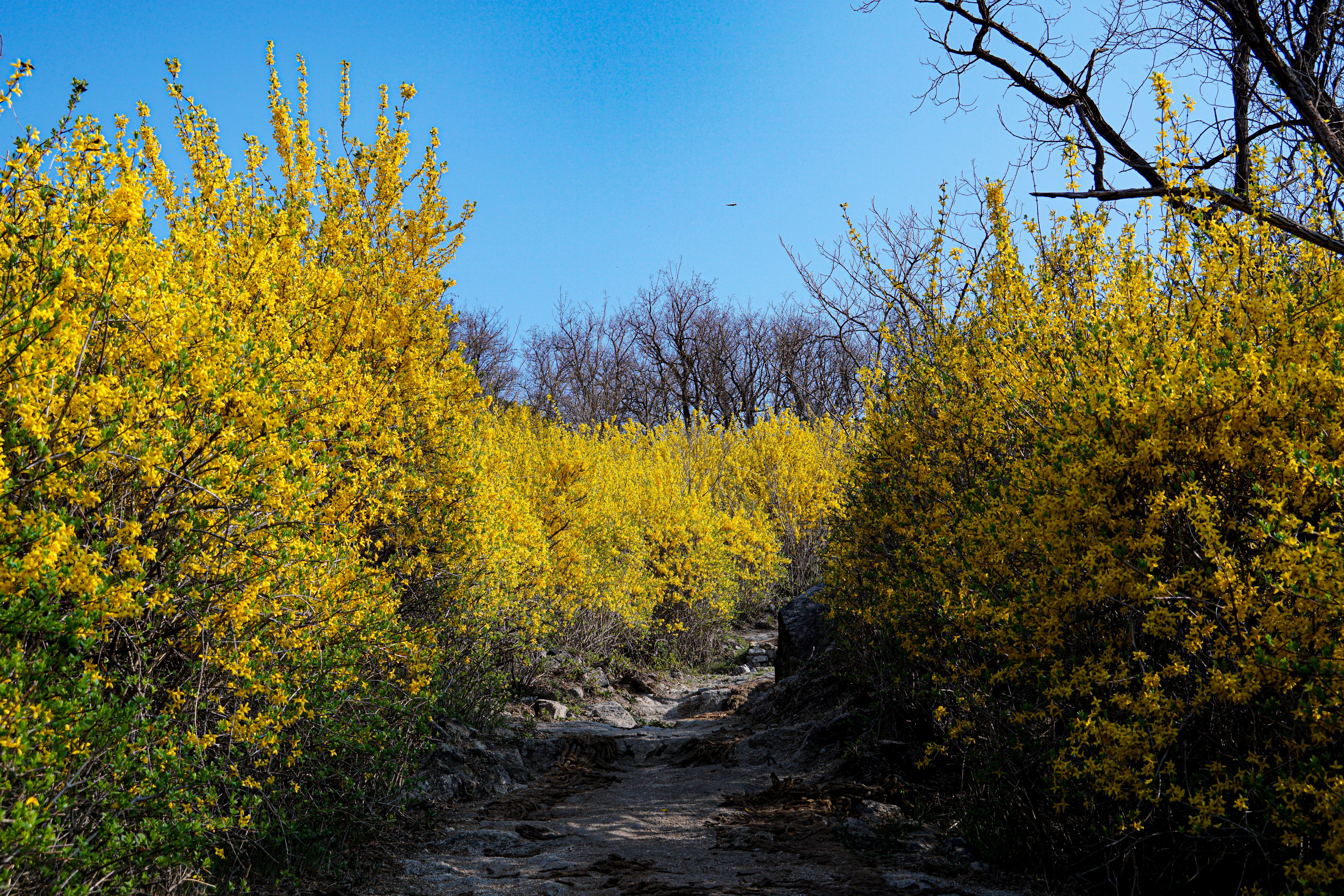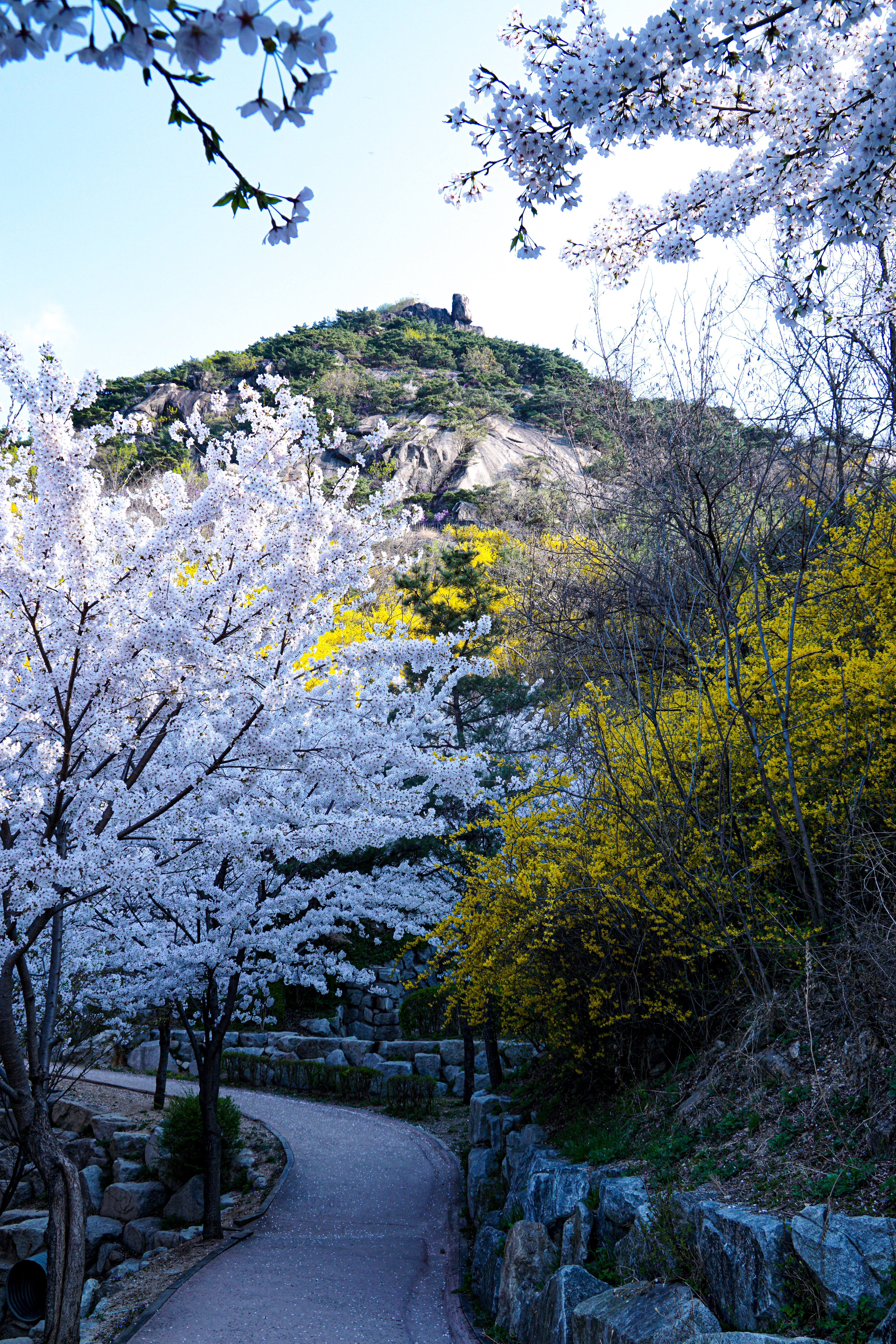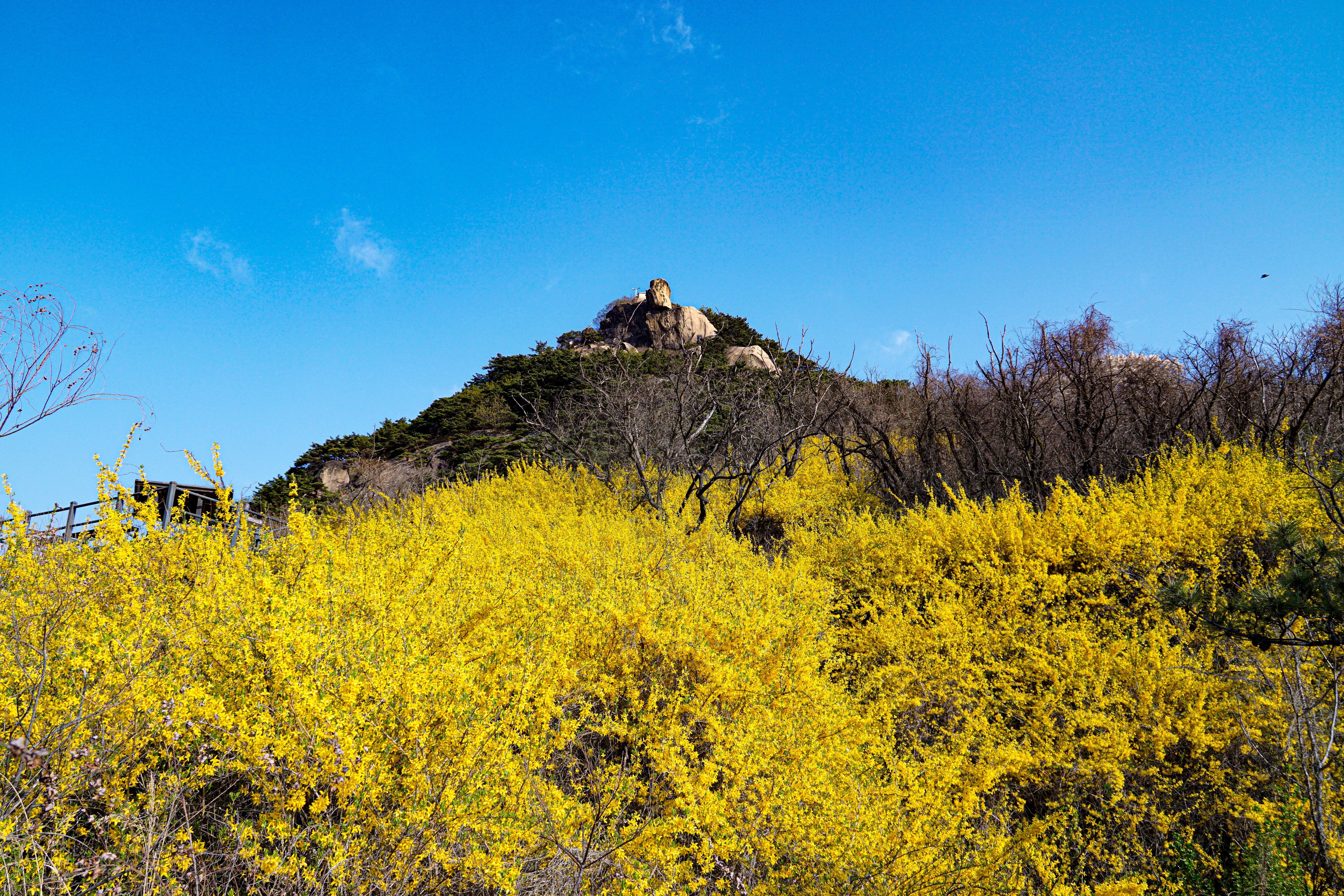 인왕산 해골바위부터 하늘다리까지 펼쳐있는 개나리 군락지.