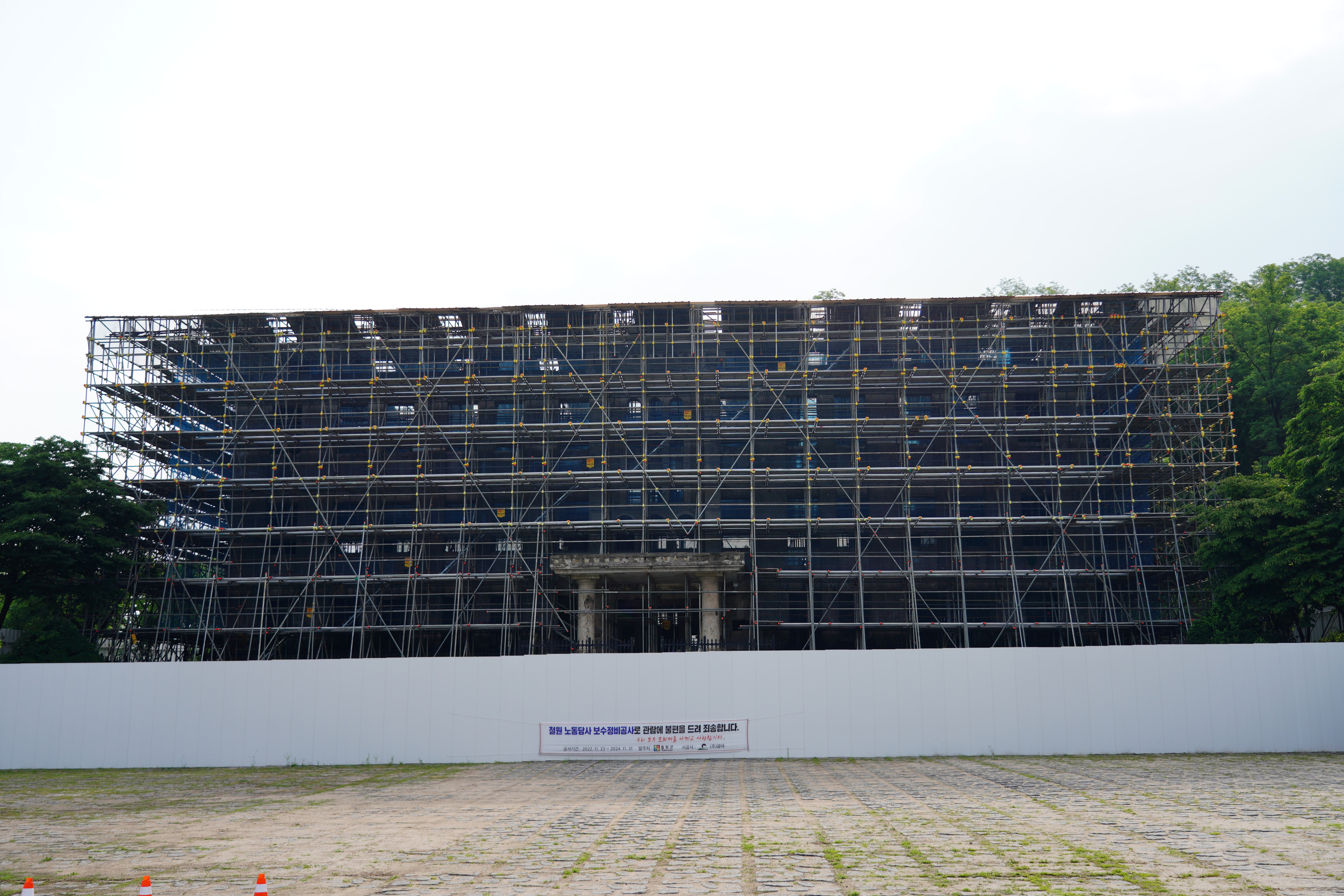 철원역사문화공원 주차장에 도착후 노동당사를 보니 공사중이다.