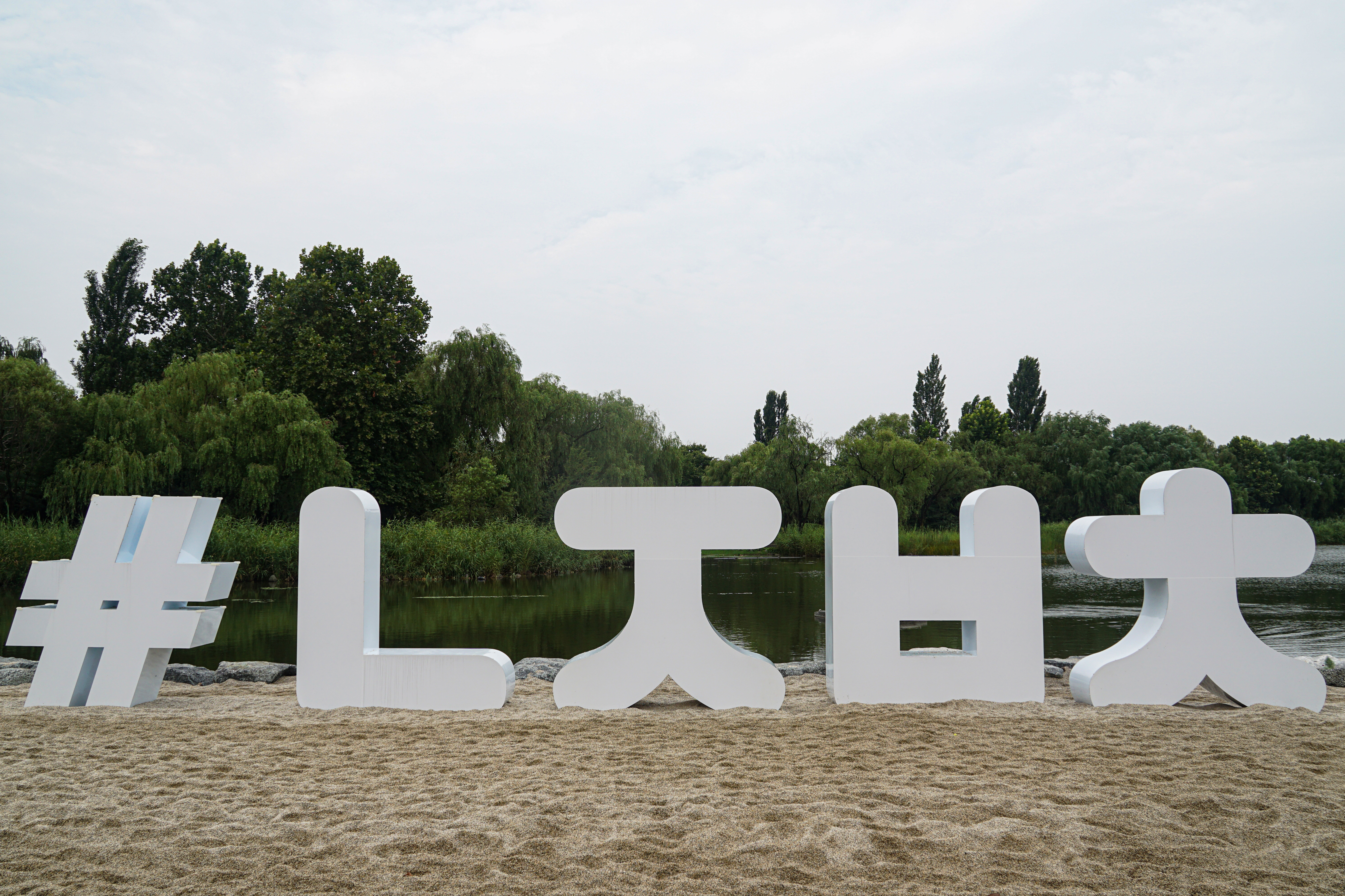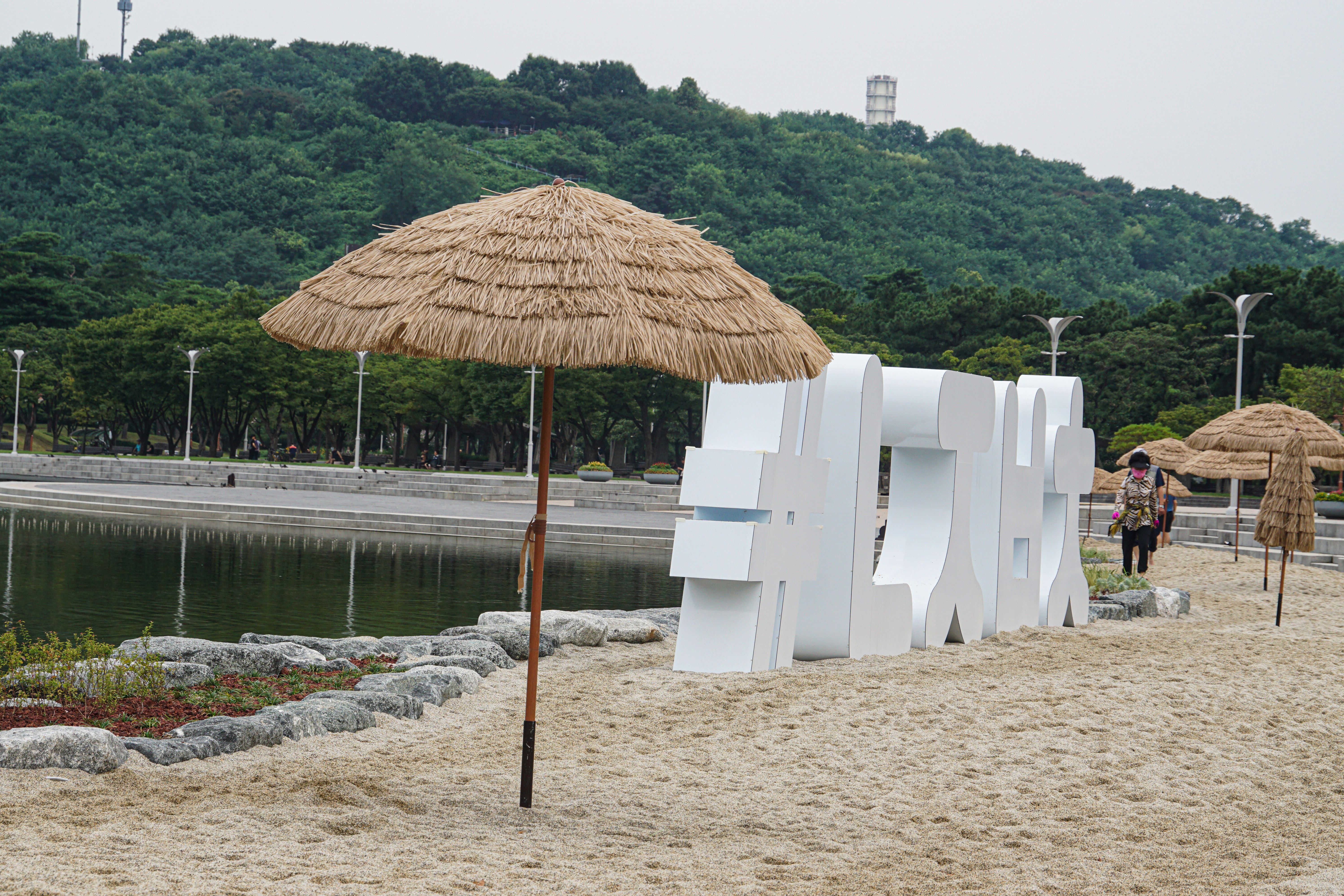 난지연못 주위에 모래를 깔아 만든 난지비치.